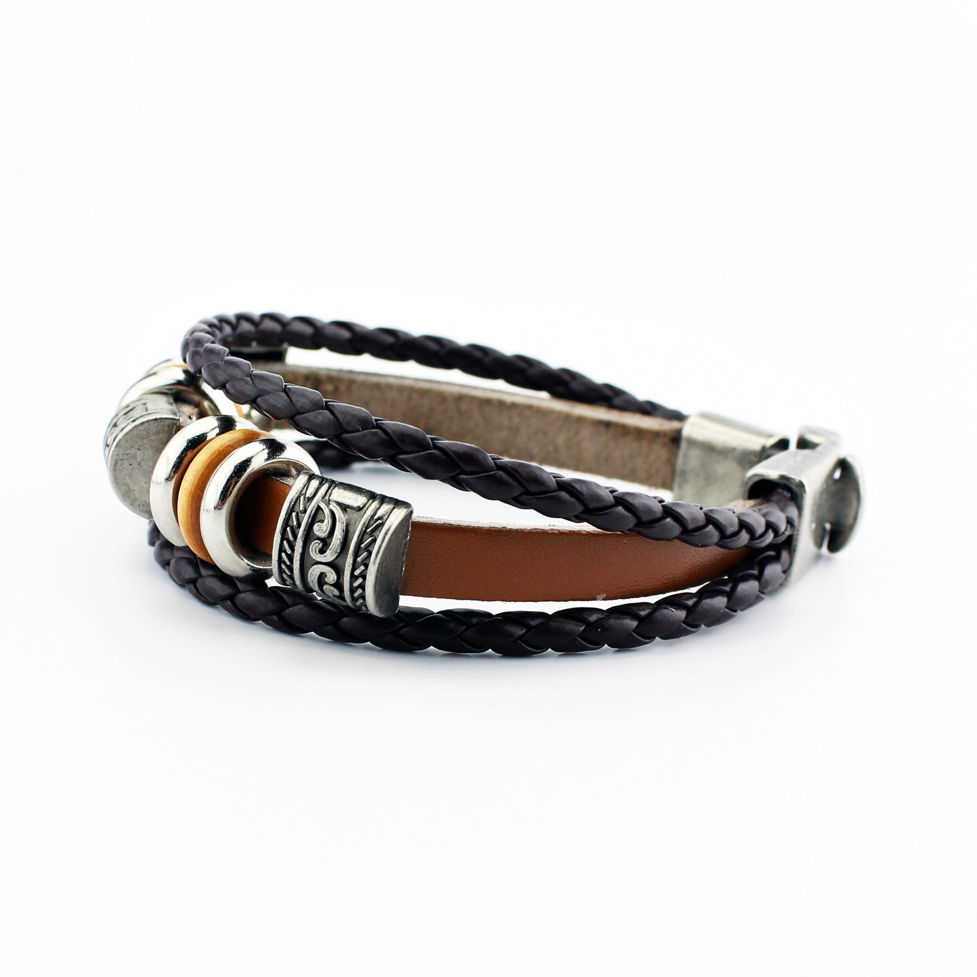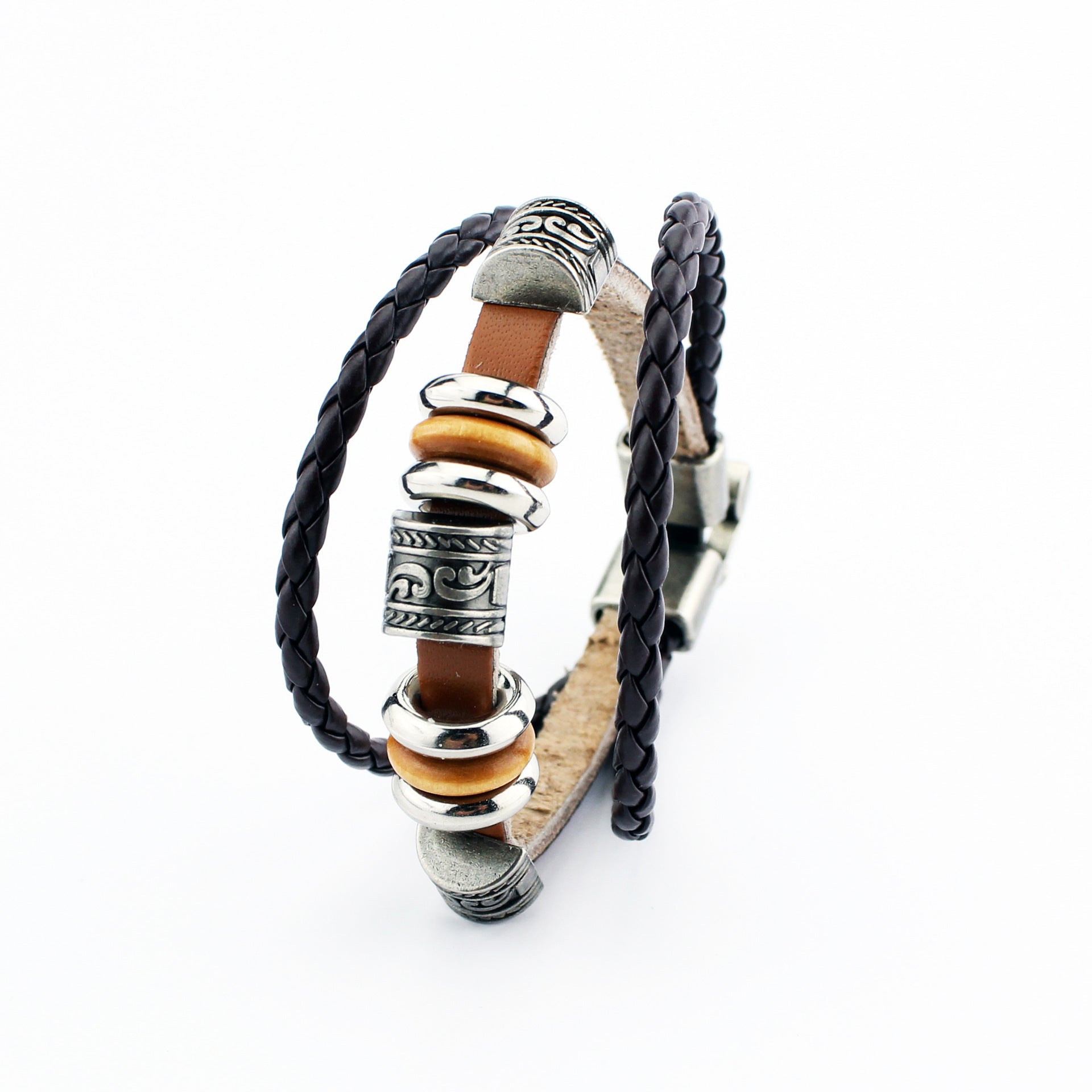 Men's Genuine Leather Charm Vintage Weave Beaded Bracelets