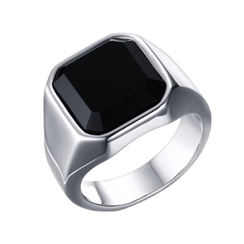 Men's Ornament Black Faceted Zircon Punk Vintage Rings