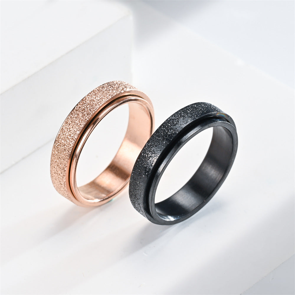 Men's Ornament Rotating Pearl Sand Titanium Steel Rings