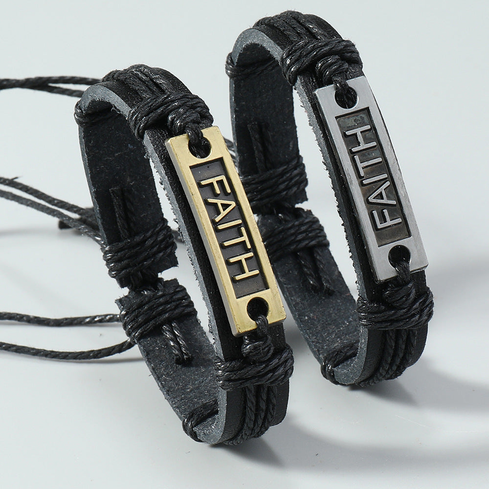 Men's Ornament Simple Vintage Alloy Hand-woven Leather Bracelets