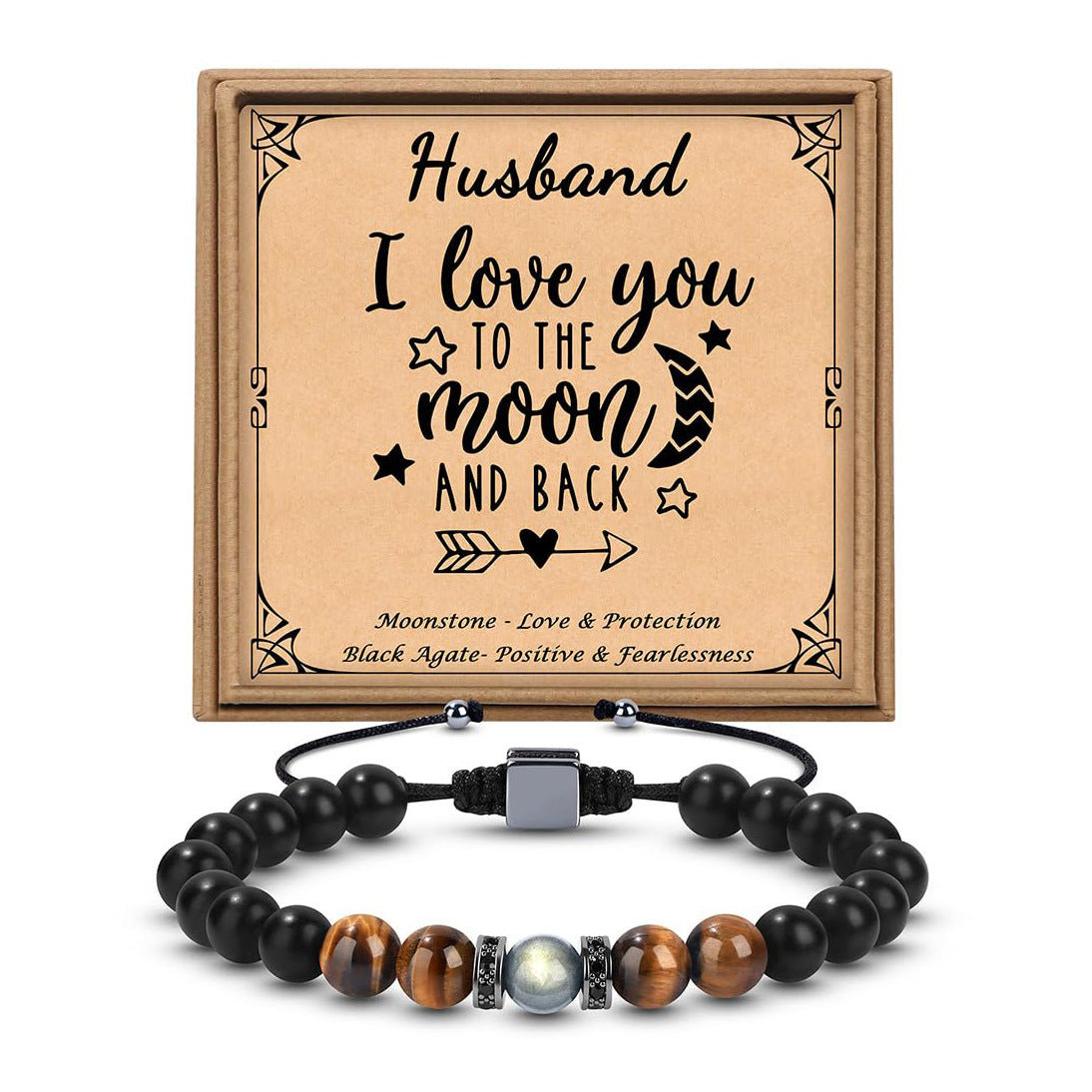 Men's Polish Bead Tigereye Stainless Steel Tail Bracelets