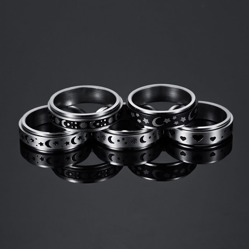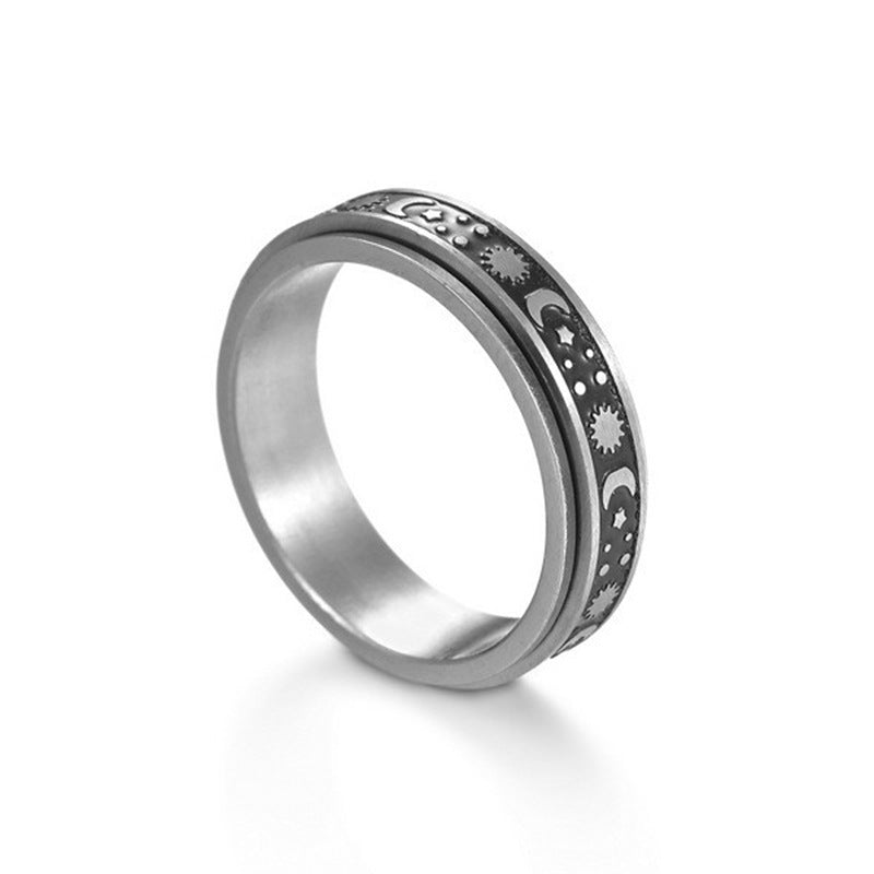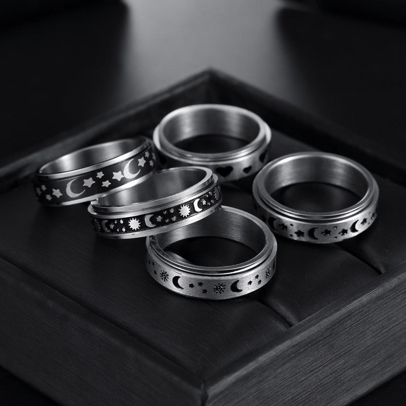 Men's Rotatable Decompression Titanium Steel Sun Star Rings