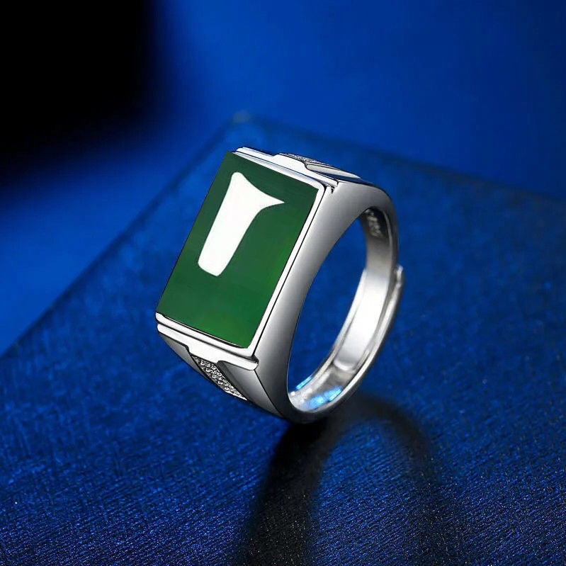Men's Square Green Agate Ruby Vintage Emerald Rings