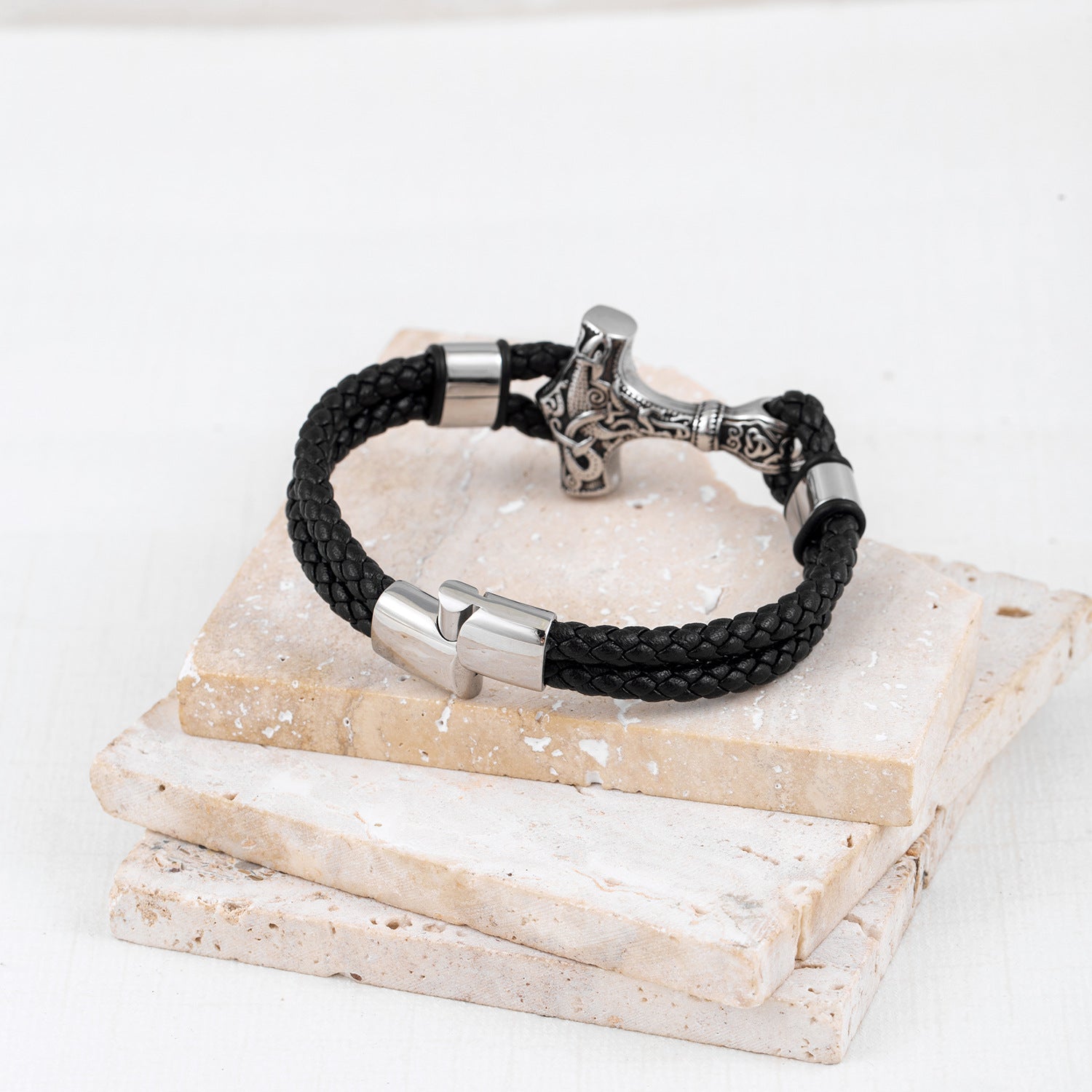 Men's Stainless Steel Woven Leather String Vikings Bracelets