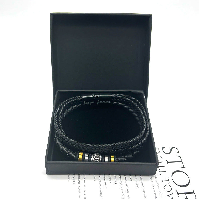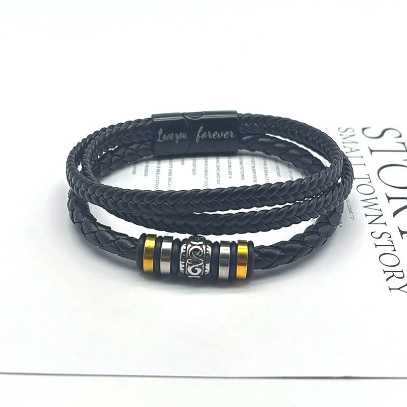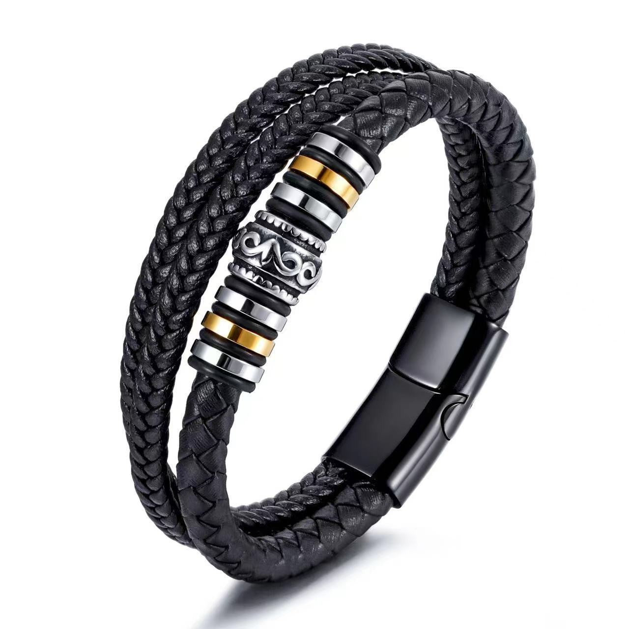 Men's Steel Leather Titanium Magnetic Snap Ethnic Bracelets
