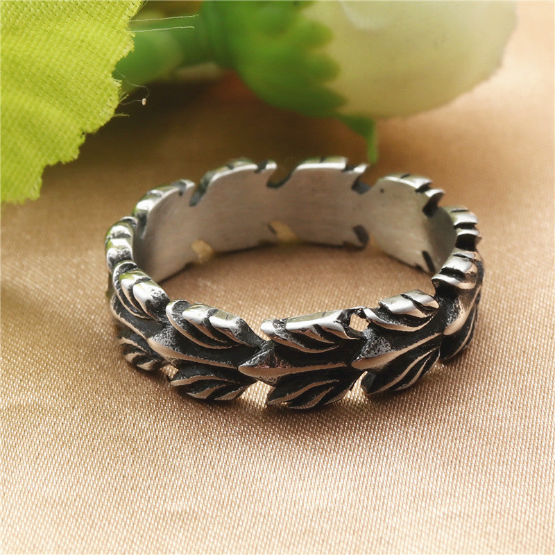 Men's Titanium Steel Feather Retro Trendy Personality Punk Rings