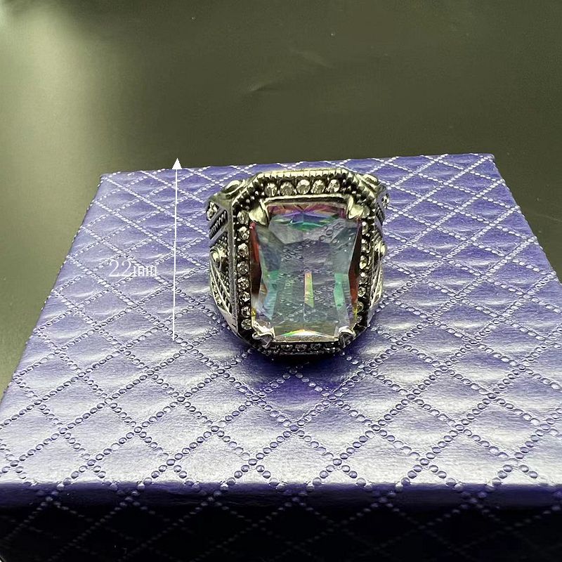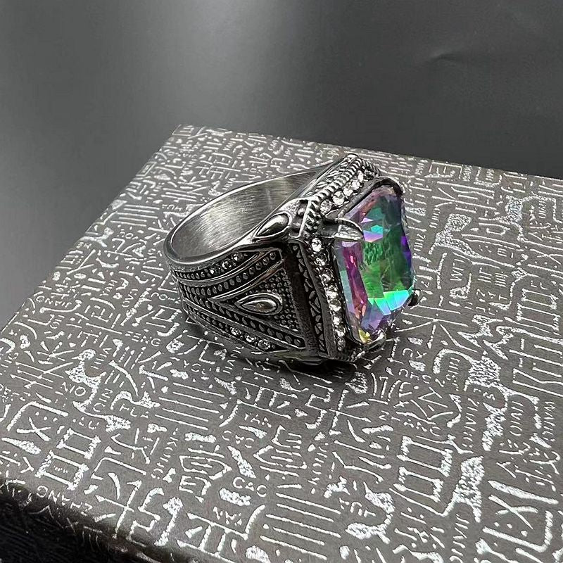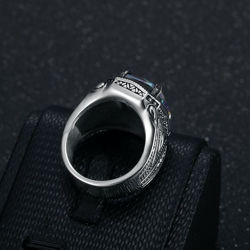 Men's Titanium Steel Polished Inlaid Colorful Synthetic Rings