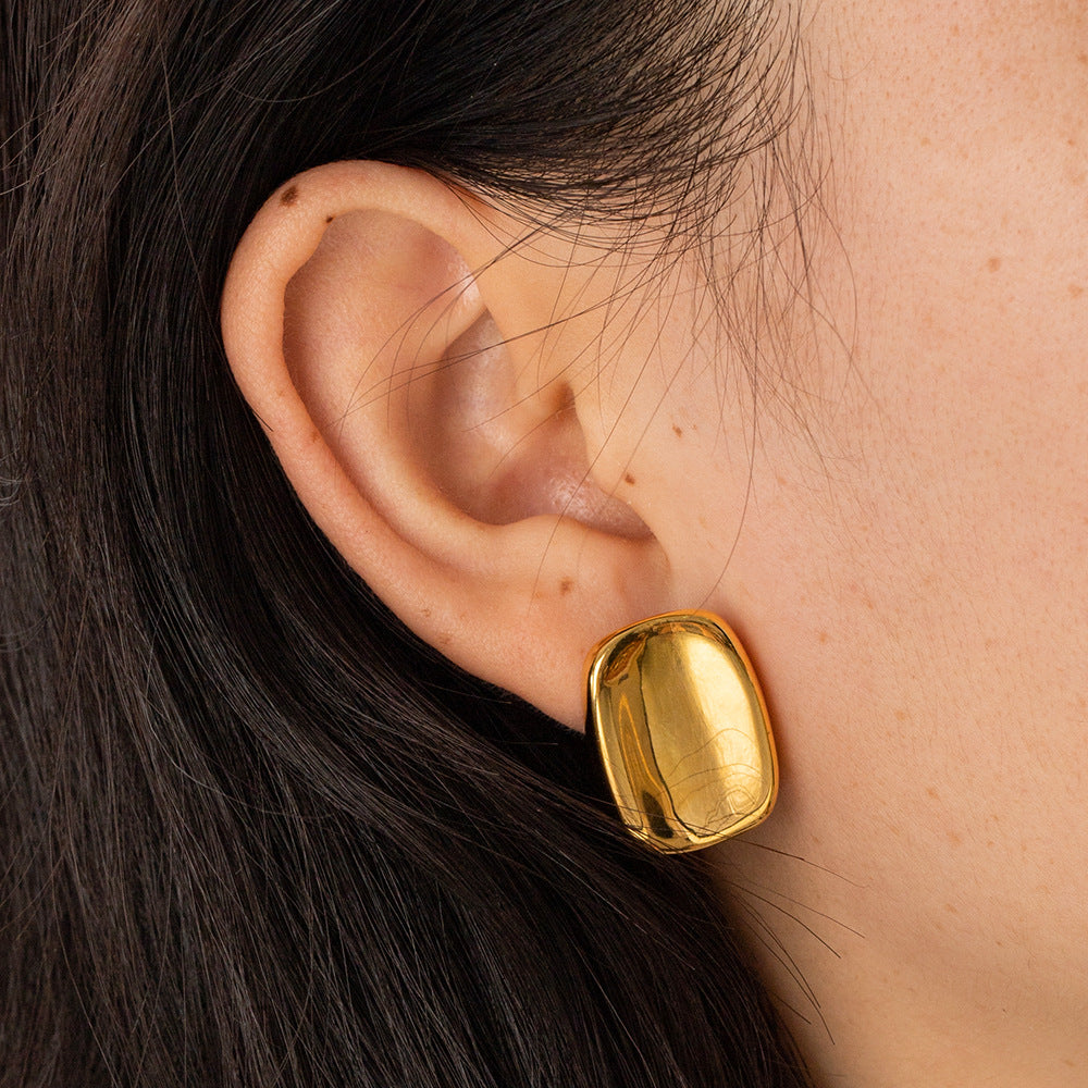 Minimalist Rectangular Glossy Fine Polishing Three-dimensional Fashion High-grade Ear Earrings