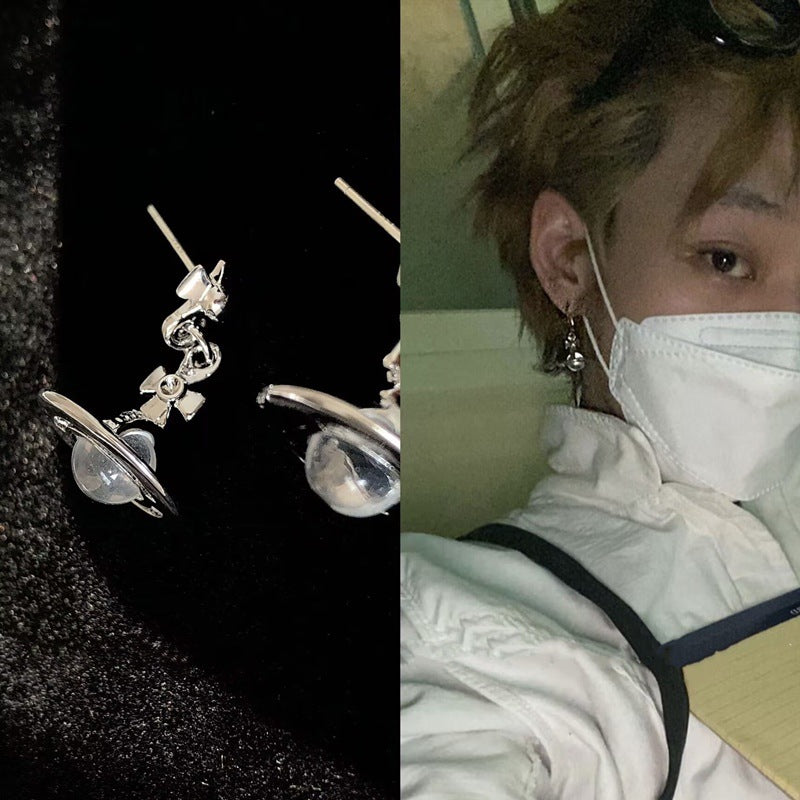 Needle Glass Ball Three-dimensional Saturn Female Niche Earrings