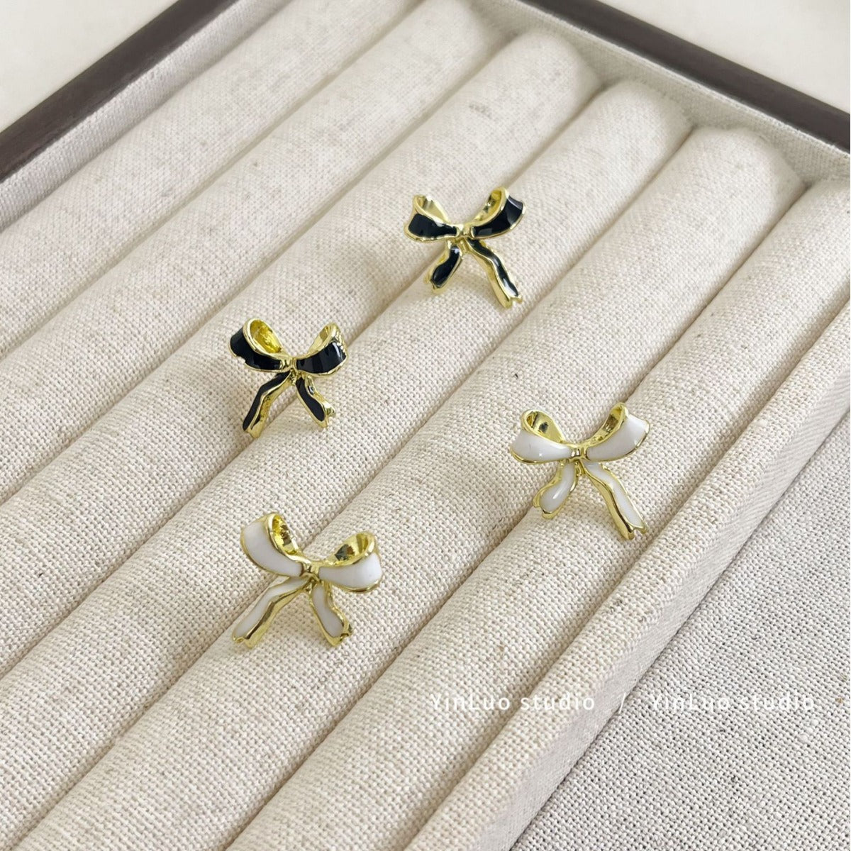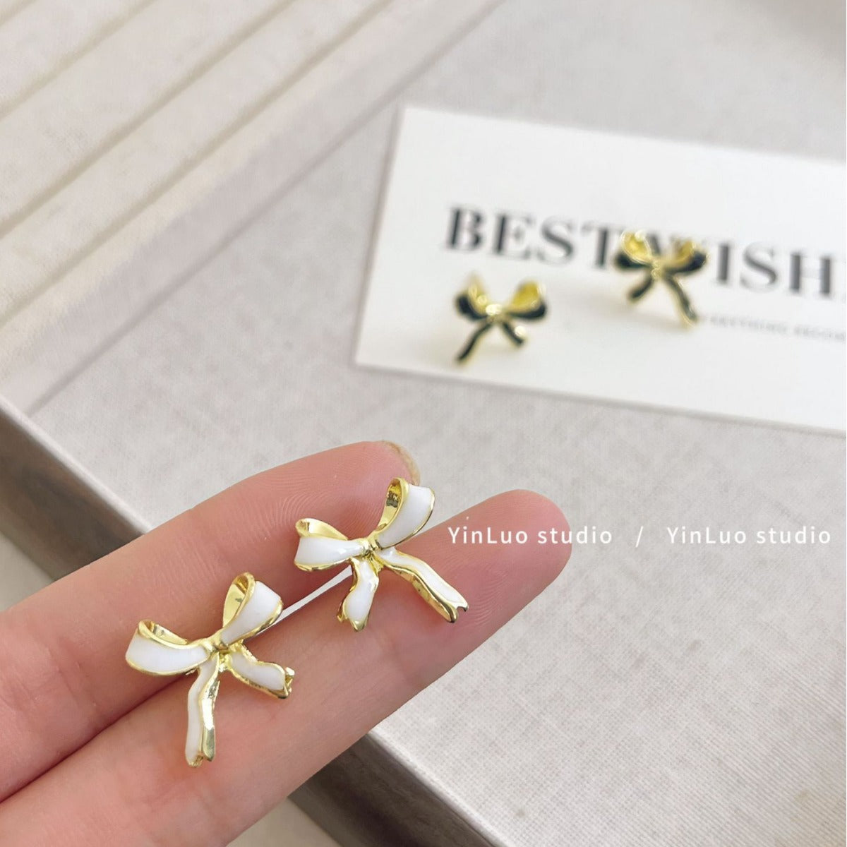 Oil Dripping Bow Design Sense Asymmetric Simple Earrings