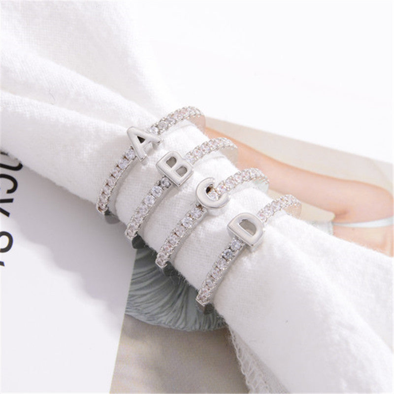Ornament Letters English Letter Zircon Opening Rings