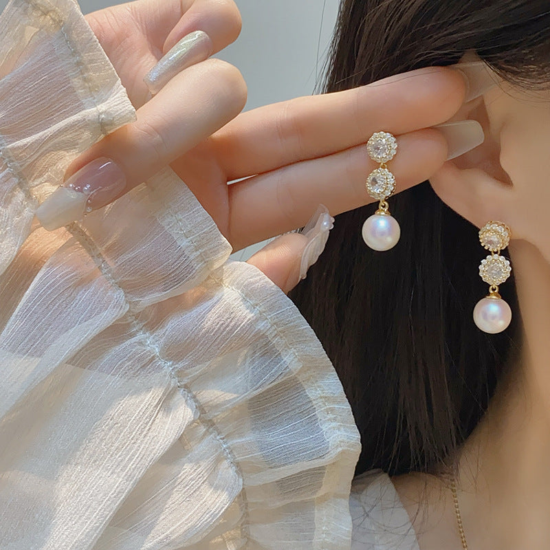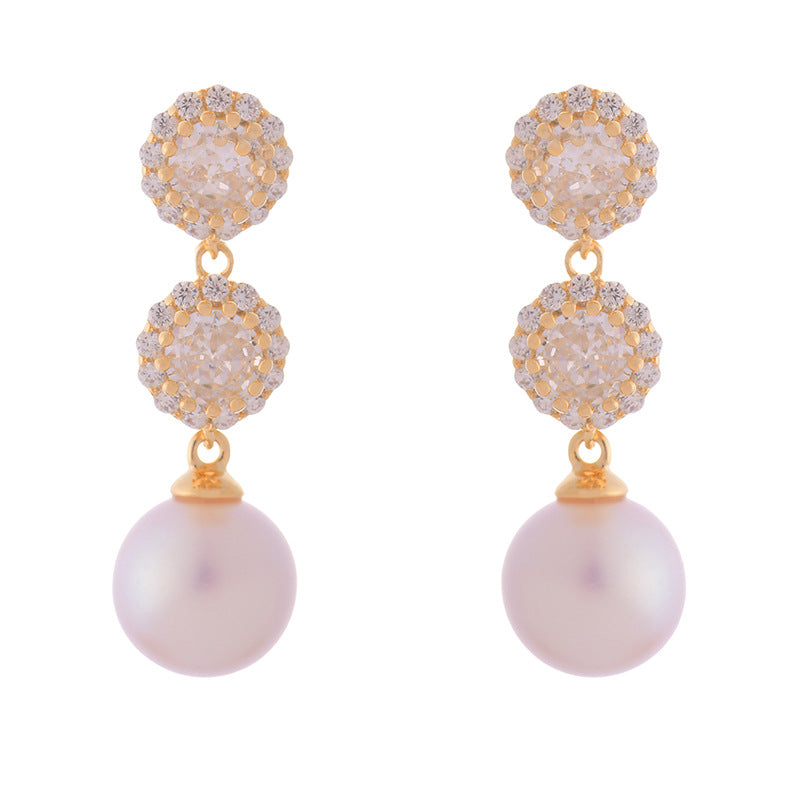 Party Over Inlaid Zircon Exquisite Pink Pearl Fashionable Earrings