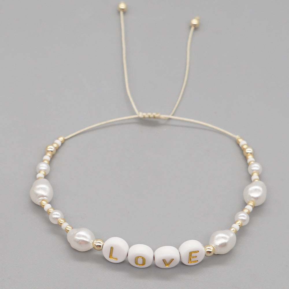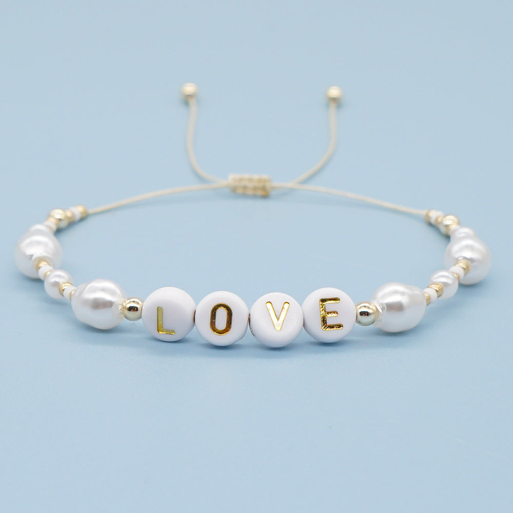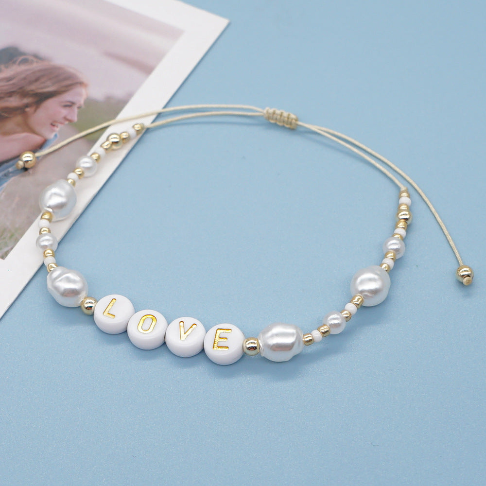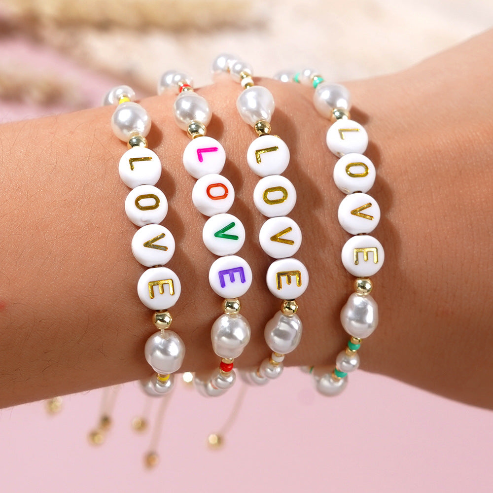 Pearl Bead Acrylic Letter Handmade Beaded Friendship Bracelets