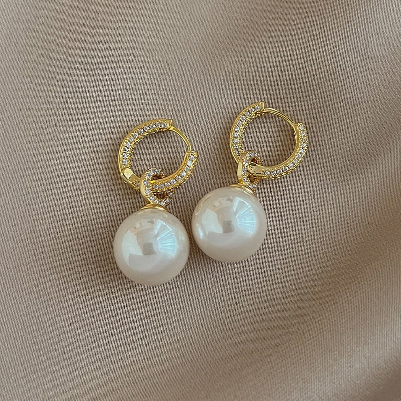 Pearl Zircon Round Creative Gold Plated Fashion Earrings