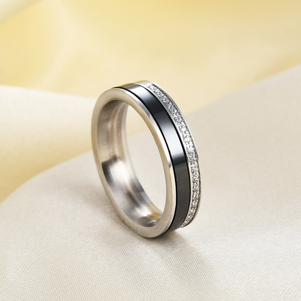 Personality Black White Single Row Diamond Rings