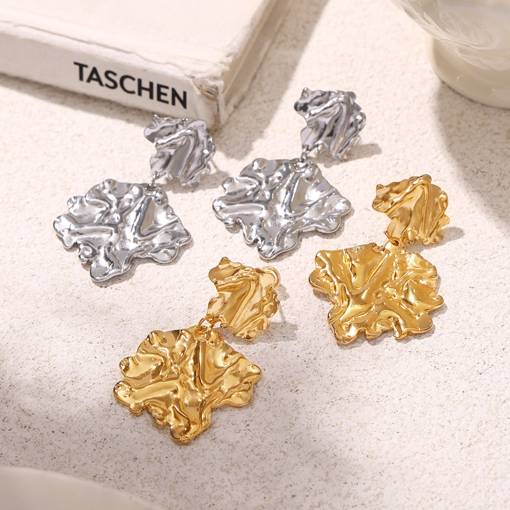 Personality Trendy Hammered Pleated Leaves High-key Earrings