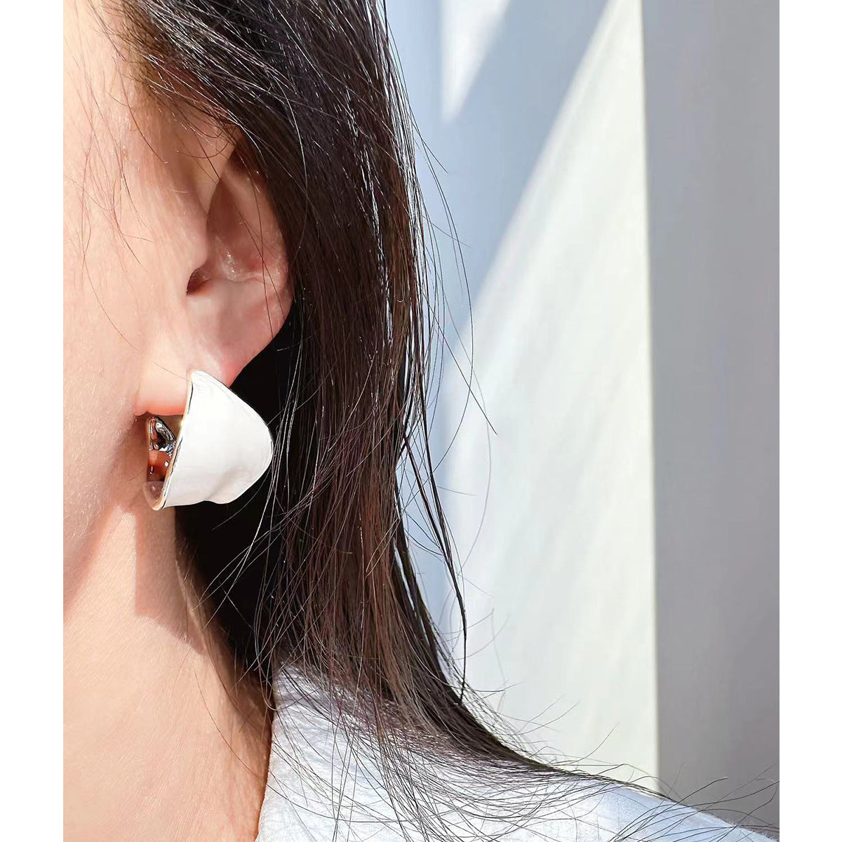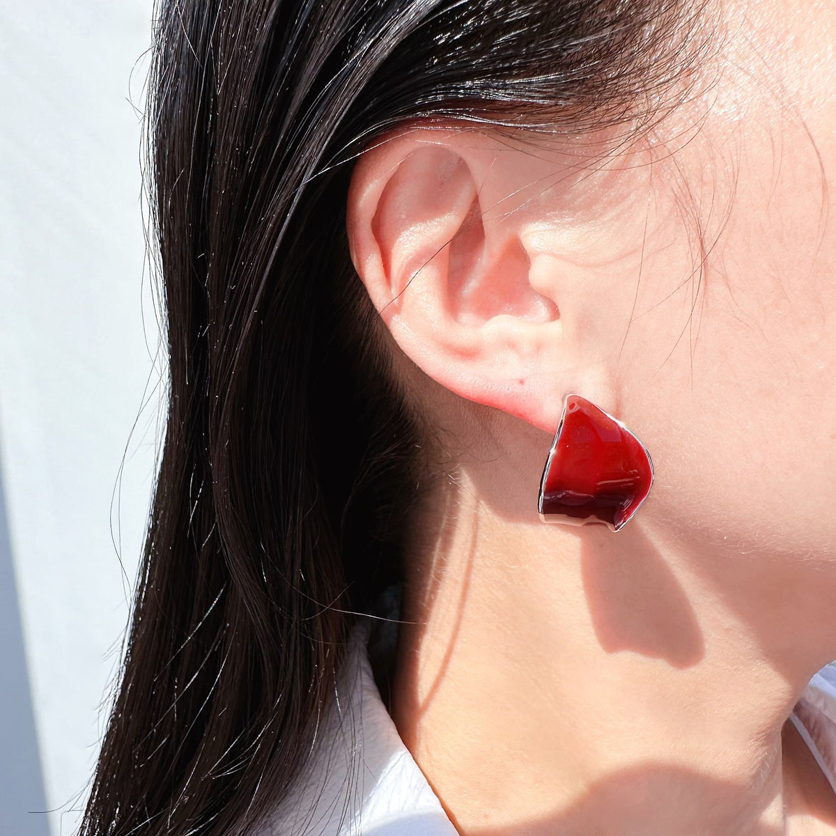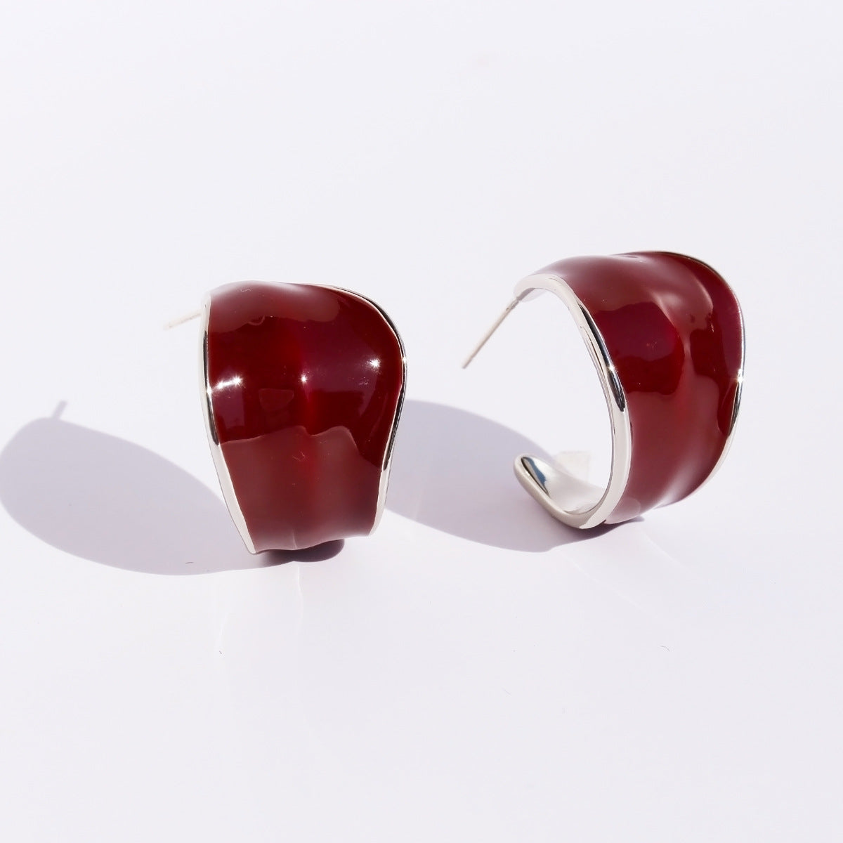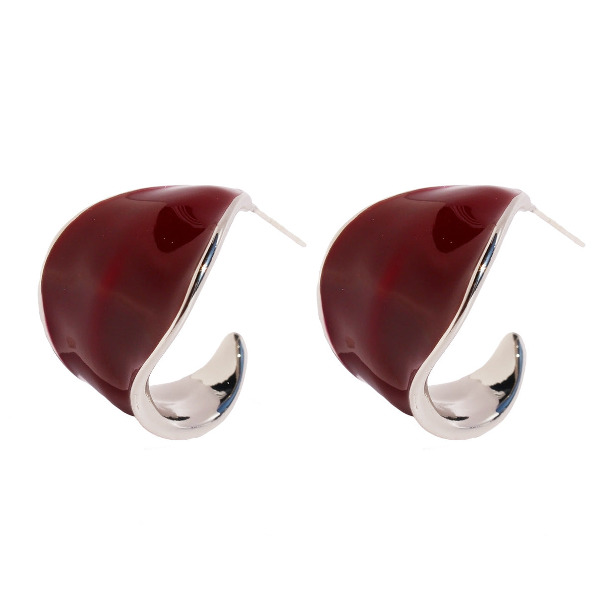 Red Enamel Curly Leaf-shaped Wine Wide Shaped Earrings