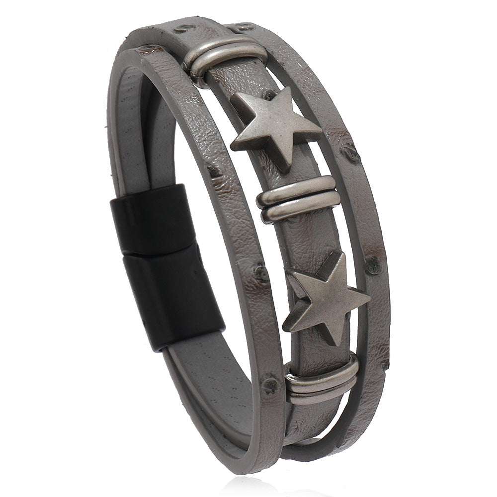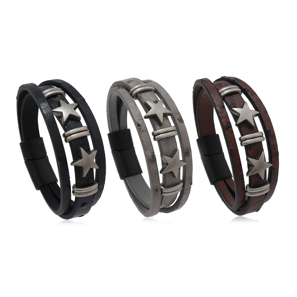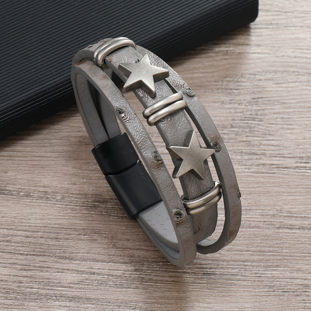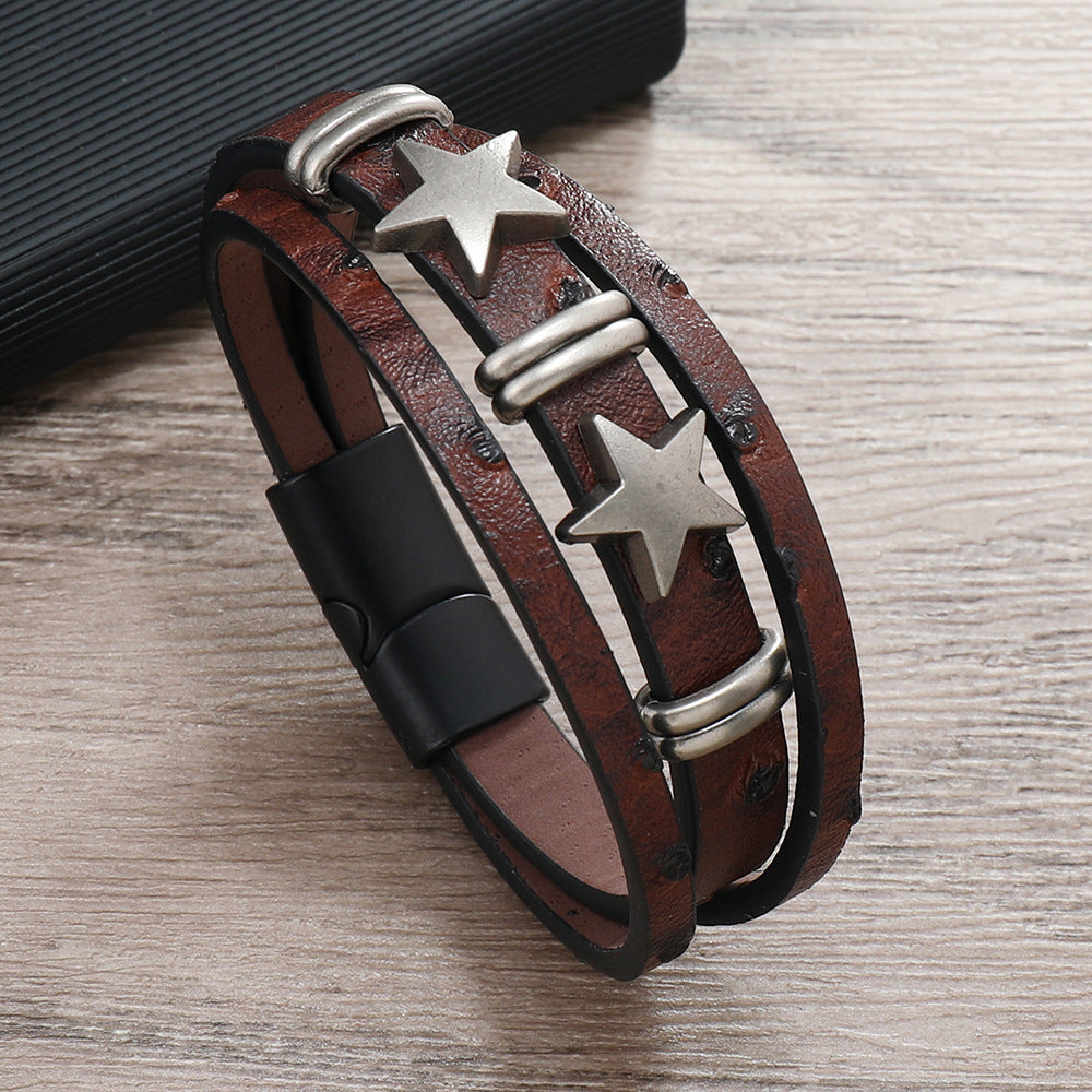 Retro Alloy Geometric Magnetic Buckle Leather Bracelets