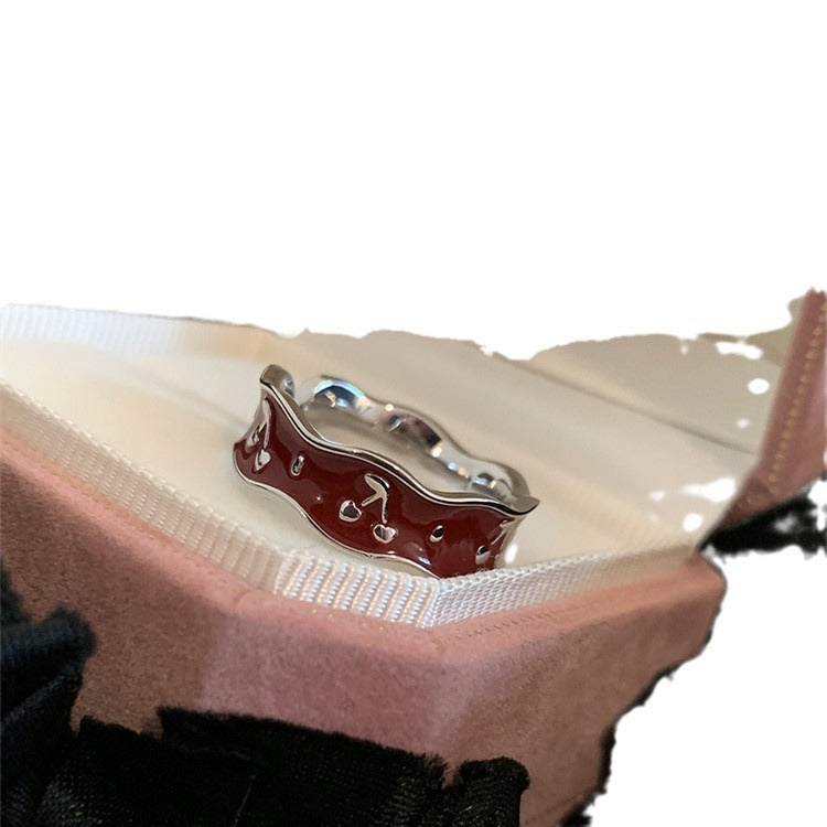 Retro Red Glaze Flower Cherry Minority Design Sense Rings