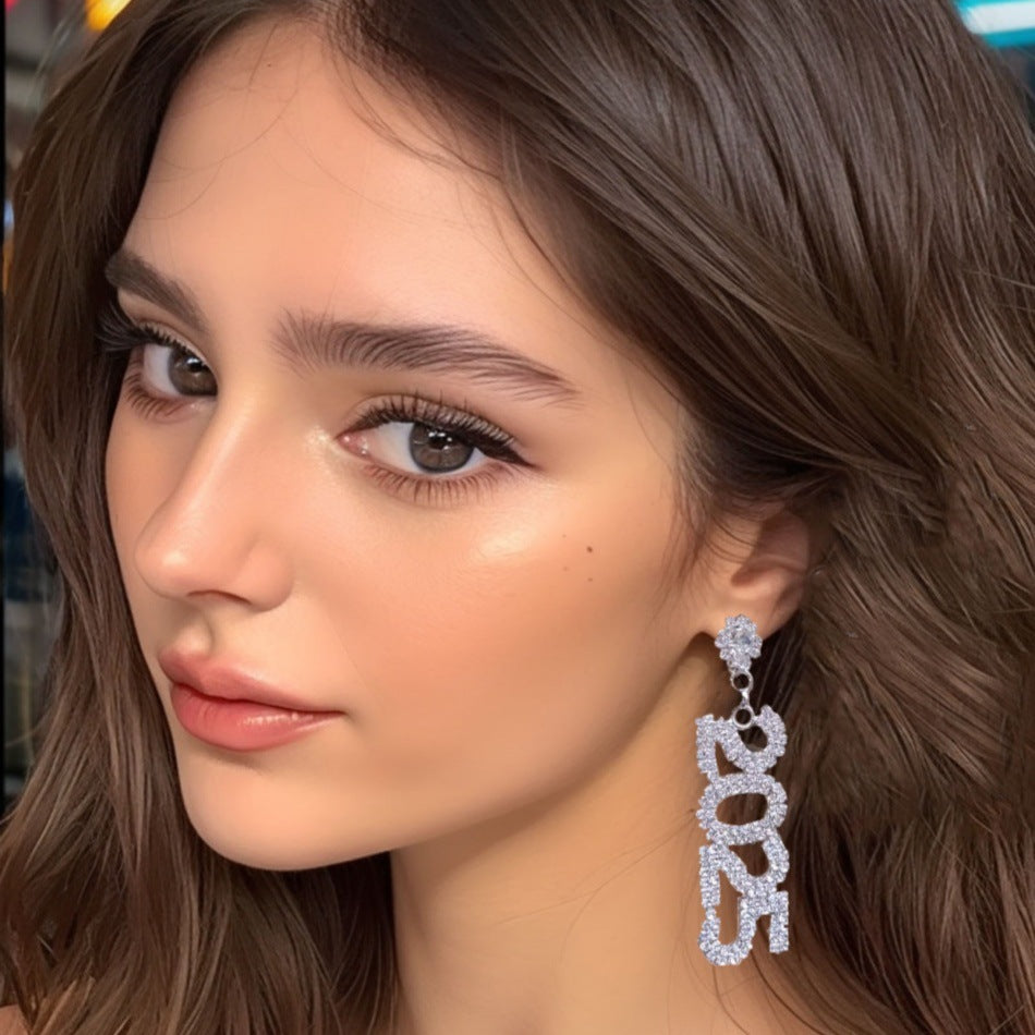 Rhinestone Digital Eardrops Fashion Zircon Full Earrings