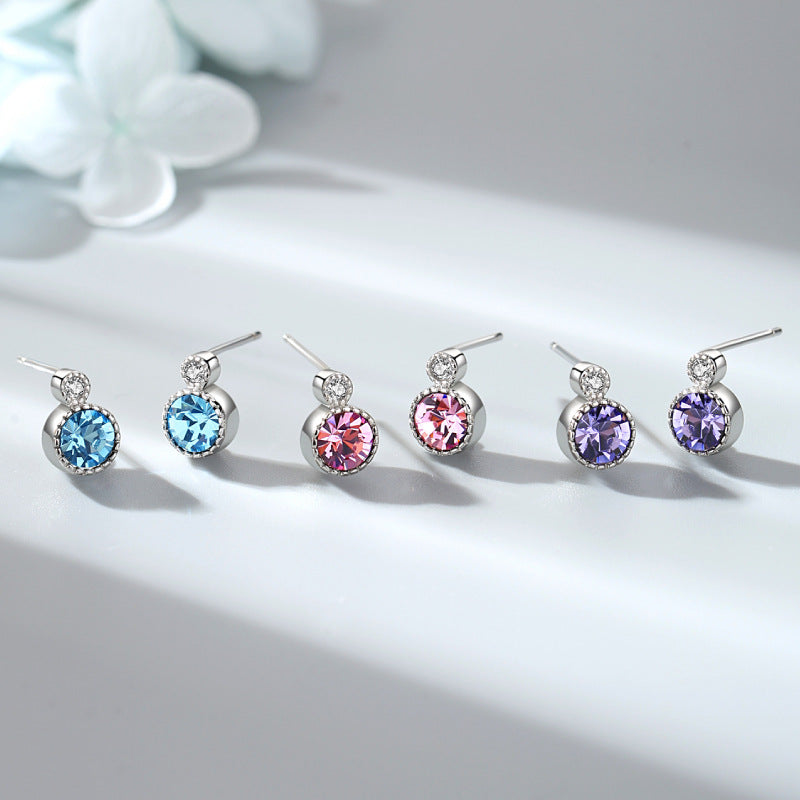 Round Ornament Sier Crystal Small Beautiful Earrings