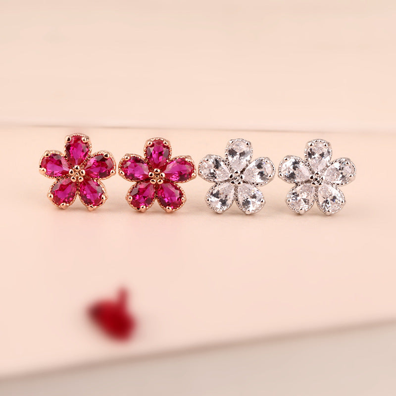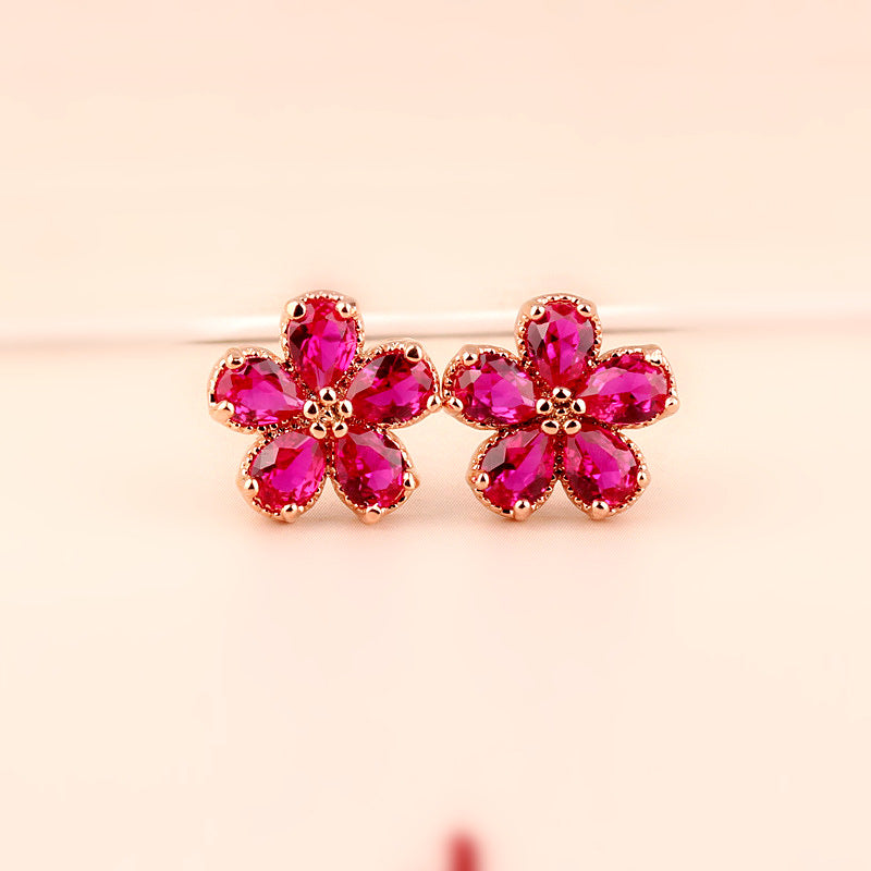 Ruby Flower Trendy Inlaid Red Corundum Earrings