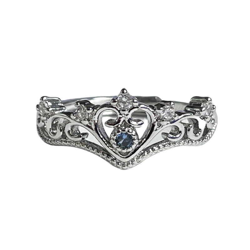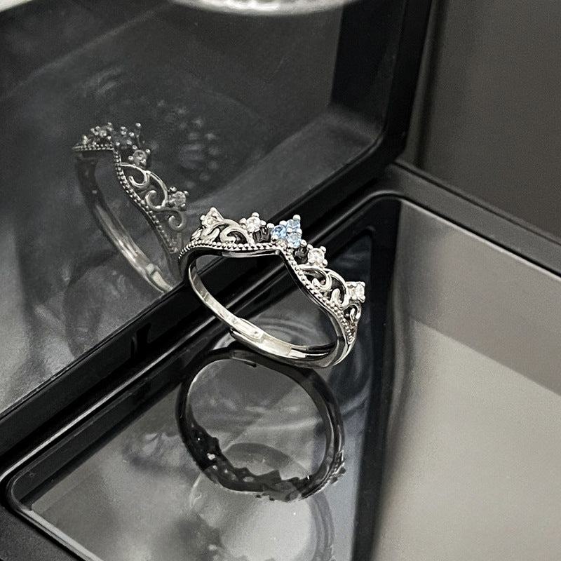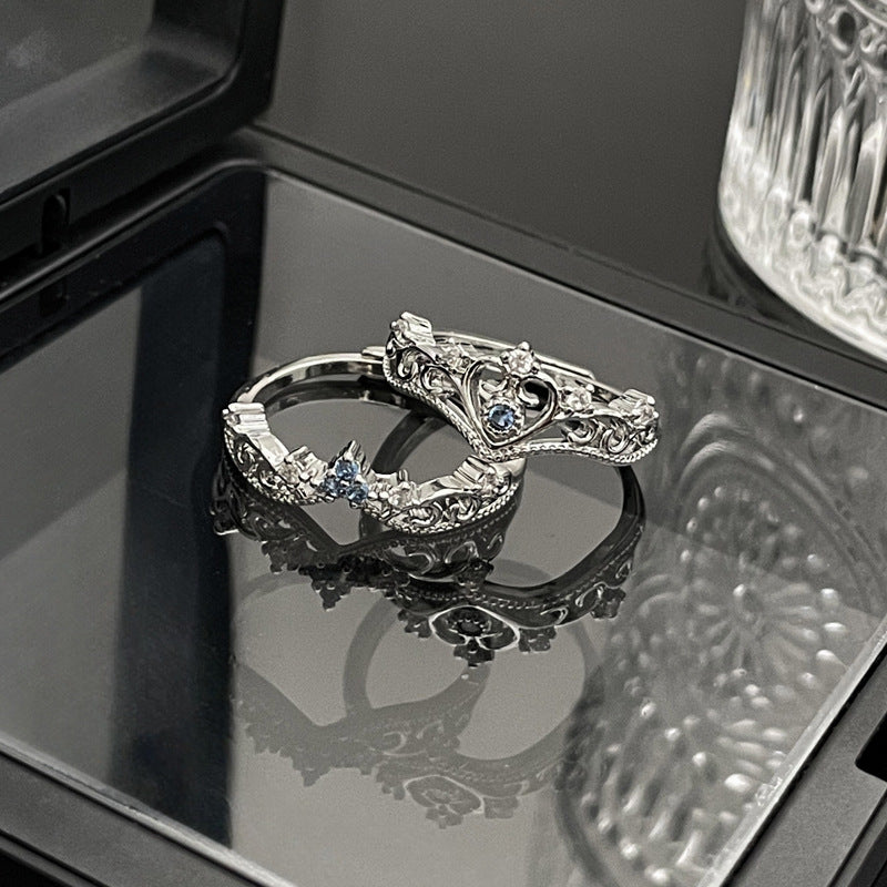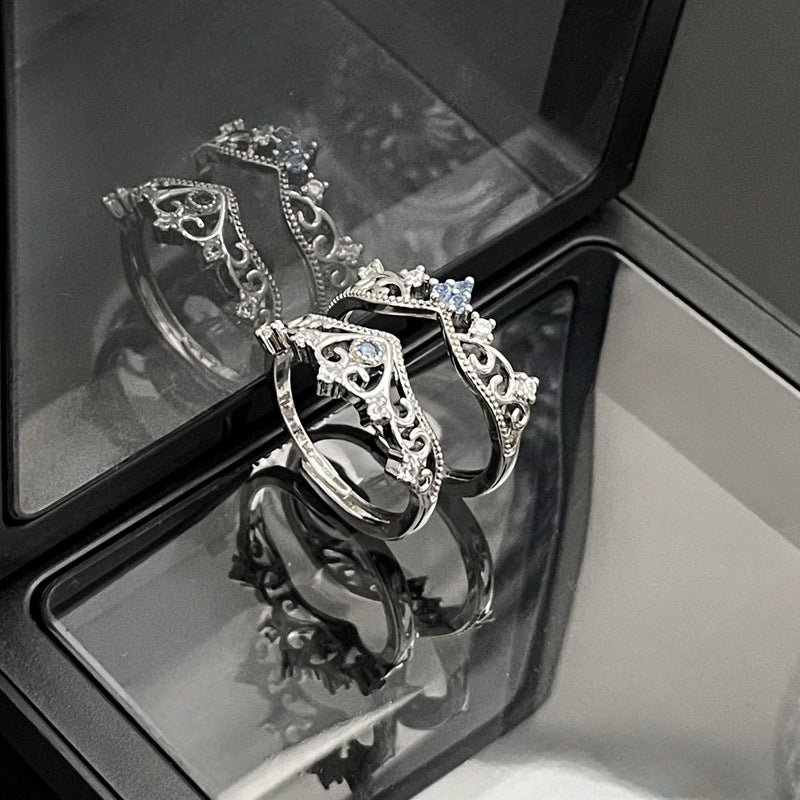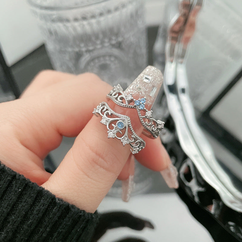 Sea Blue Zircon Crown Open Female Hollow Retro Rings