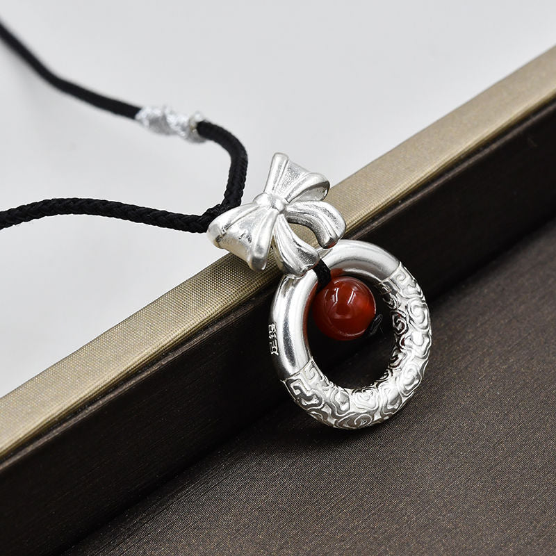 Sier Bow Peace Buckle Hand-knitted Rope Necklaces