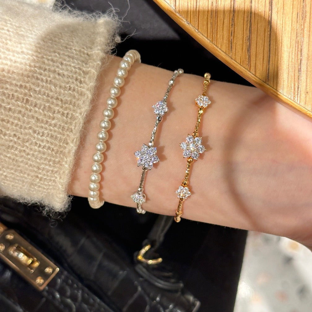 Sier Elastic Flower Sunflower Triple Light Bracelets