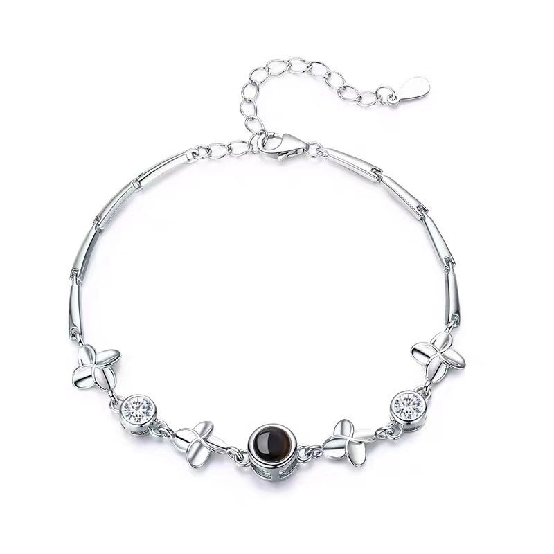 Sier Female Projection Clover Micro Carved Bracelets