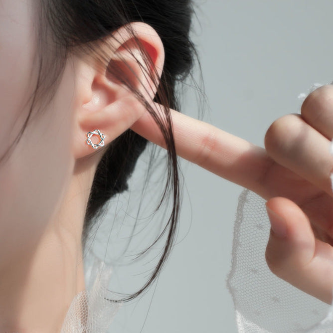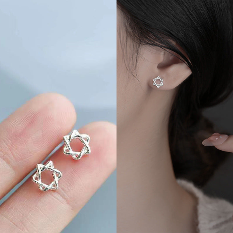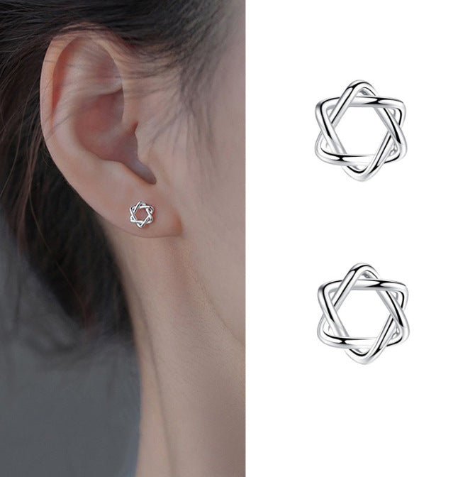 Sier Three-dimensional Hollow Hexagram Style Sweet Earrings
