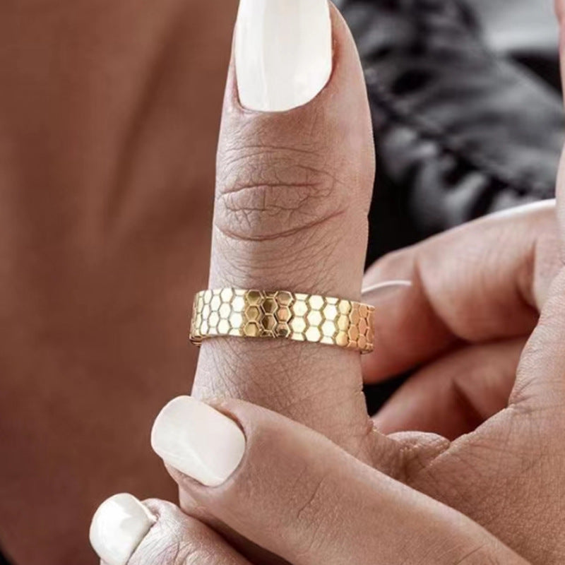 Simple Honeycomb Pattern Titanium Steel Gold Bracelets