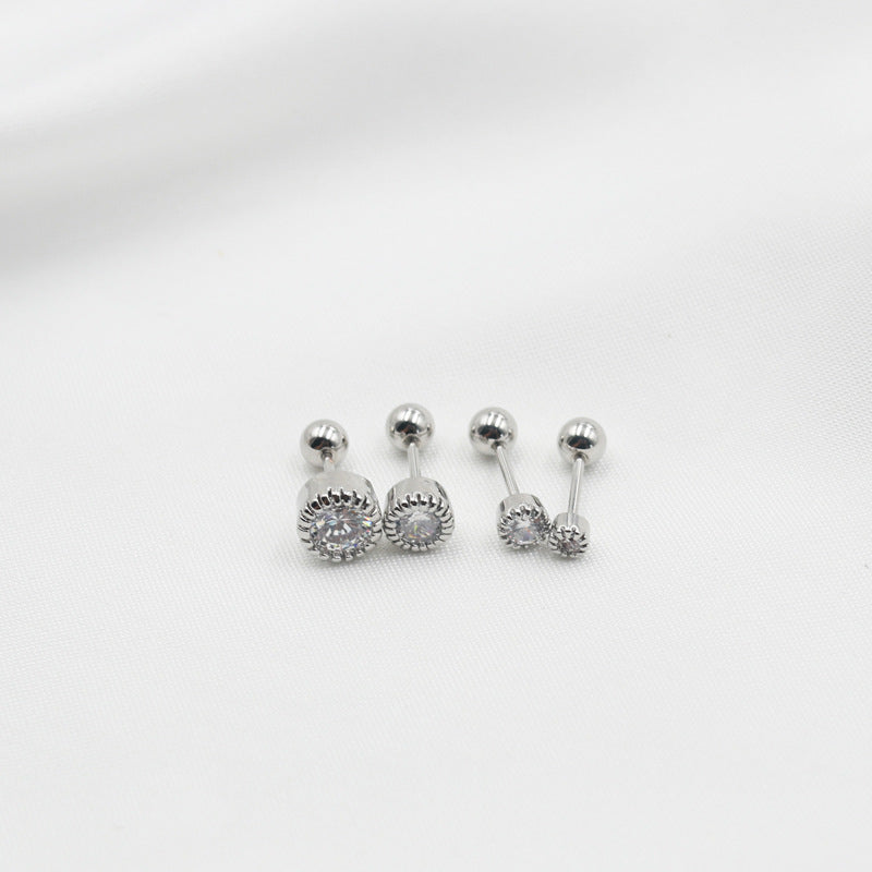 Sleeping Thread Ball Round Mini Single Diamond Earrings