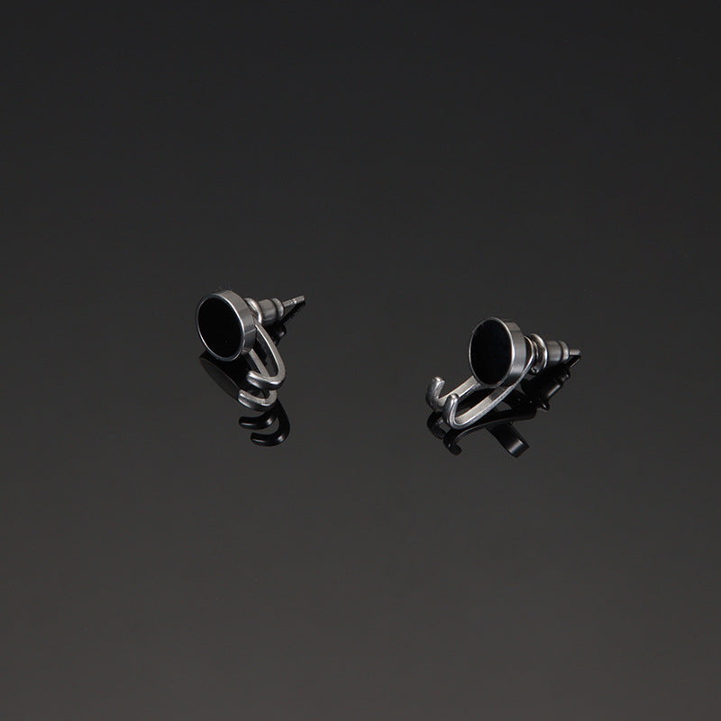 Small Claw Trendy Unique Hook Combination Simple Black Titanium Earrings