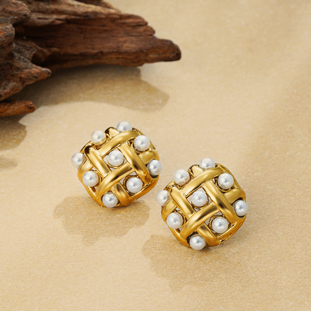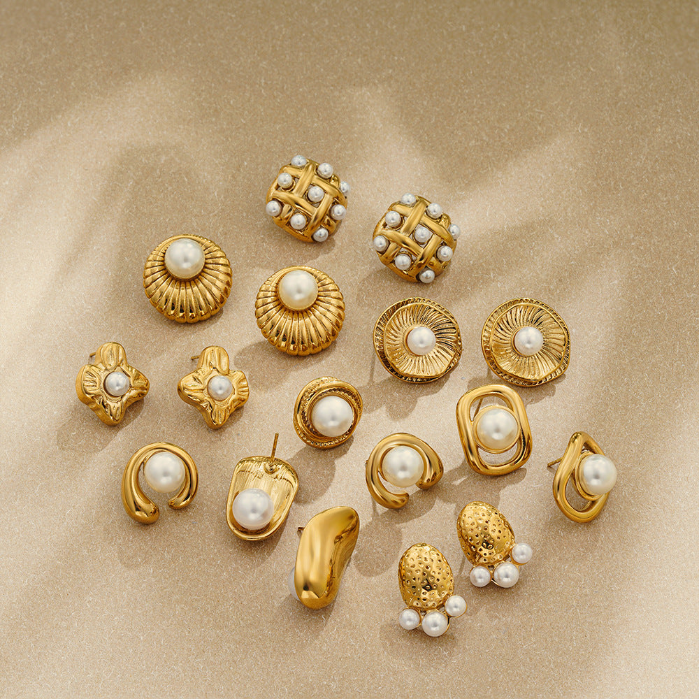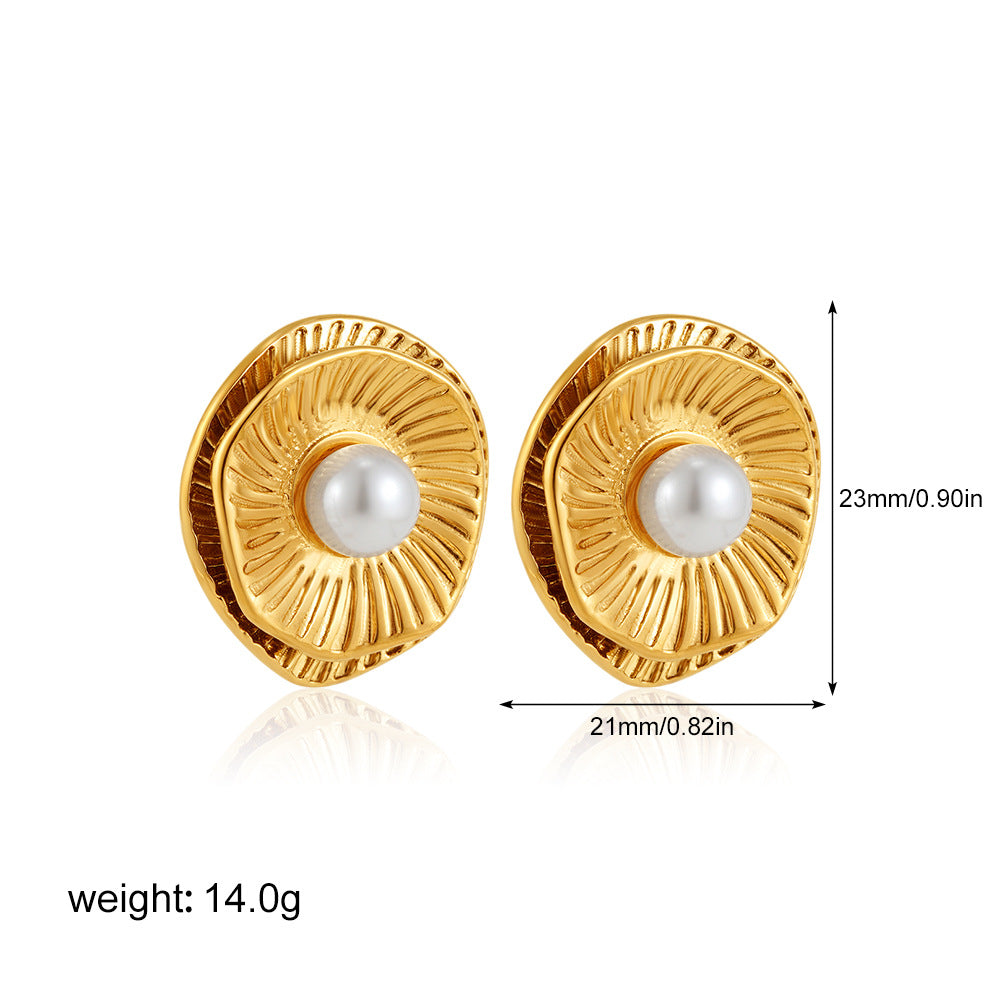 Stainless Steel Pearl Perfect Circle Elegant Earrings