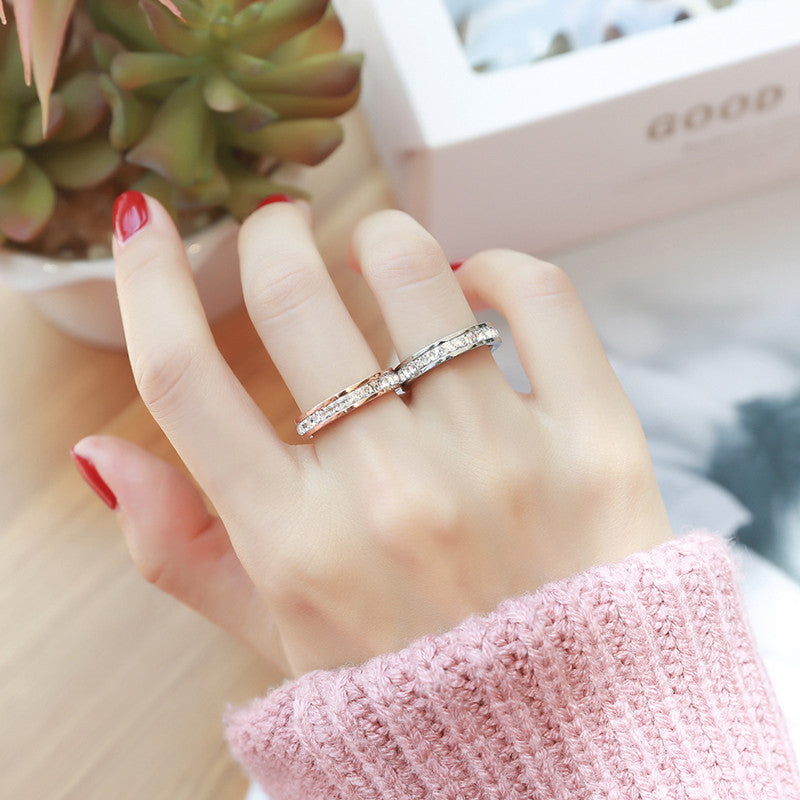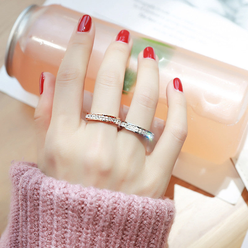 Starry Titanium Steel Female Single Double Row Diamond Full Rings