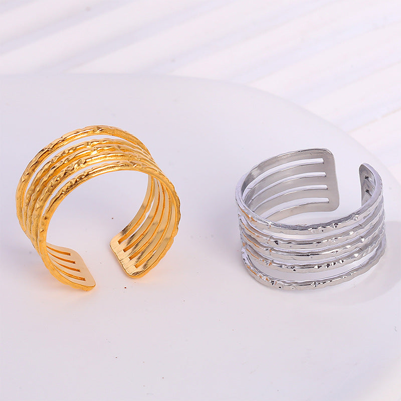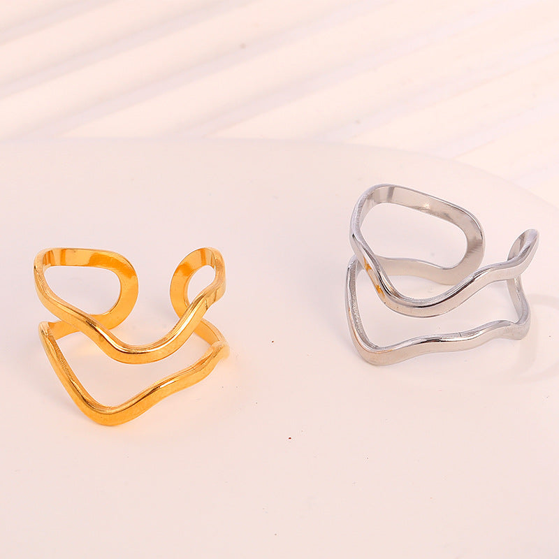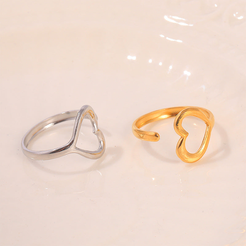 Steel Gold-plated Love Heart Flowers Glossy Rings