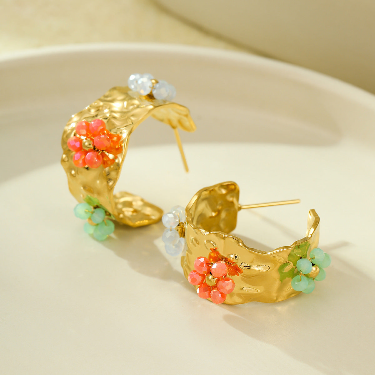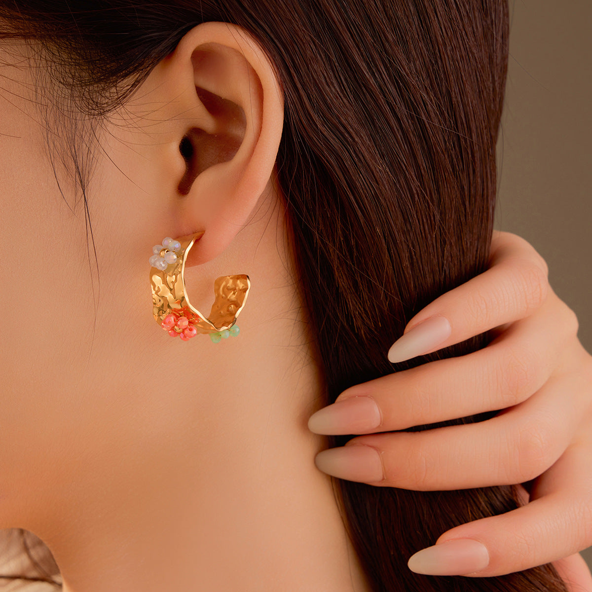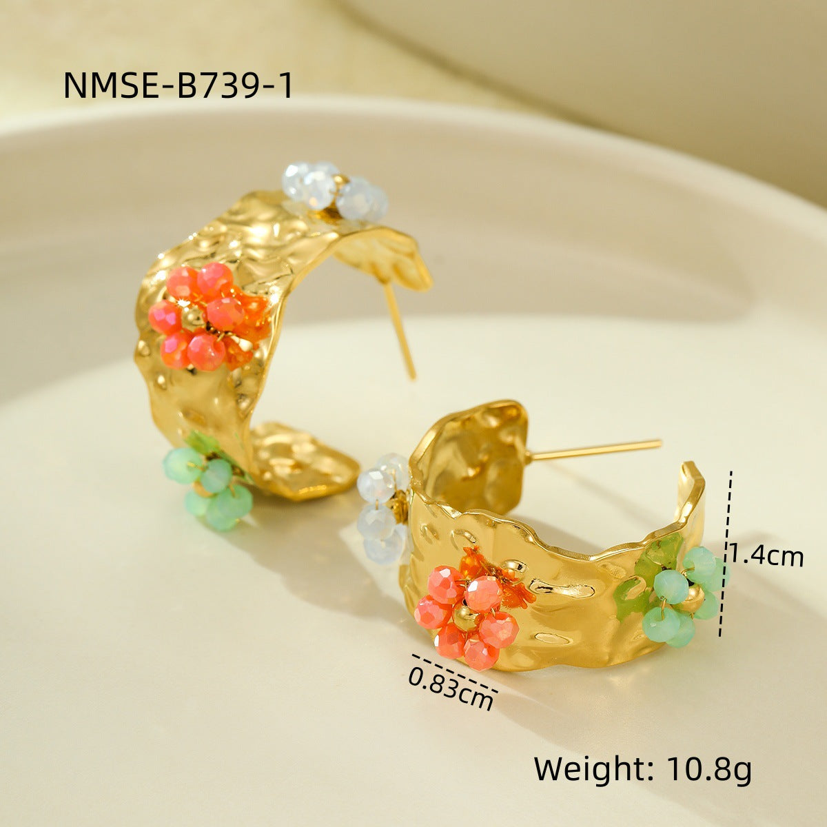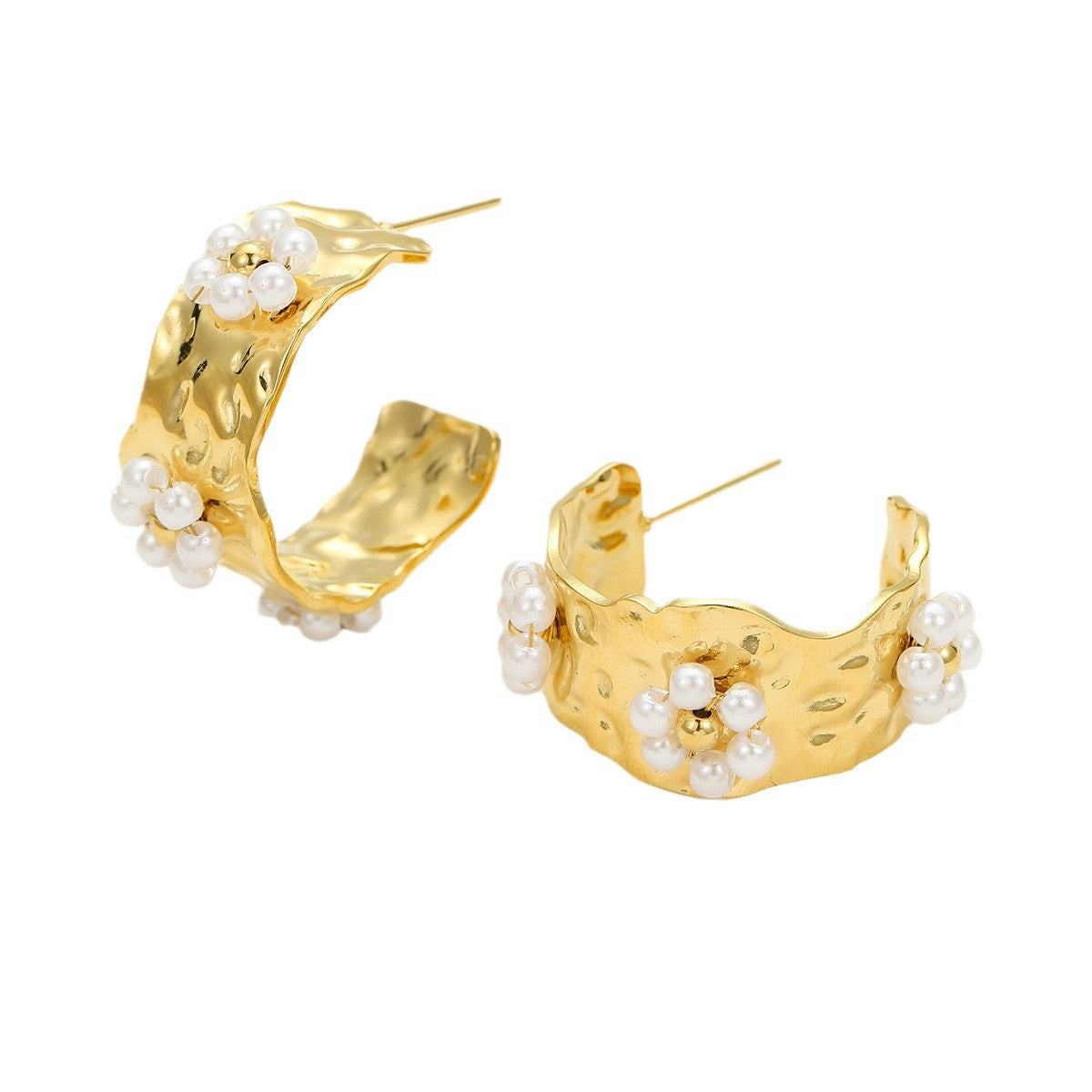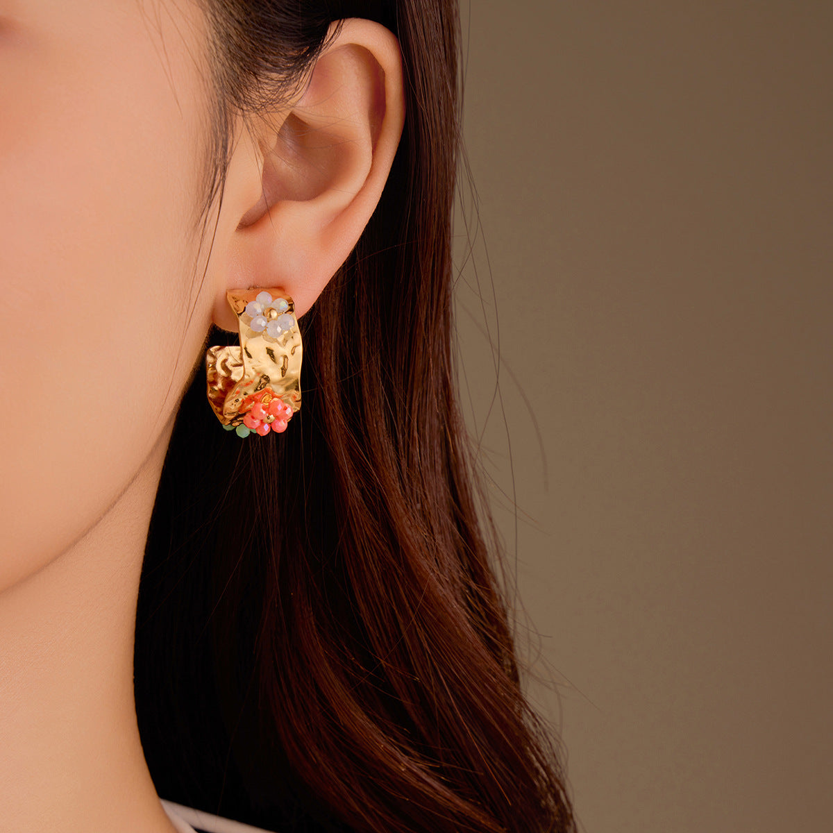 Steel Shaped Texture Color Zircon Stringed Pearls Earrings