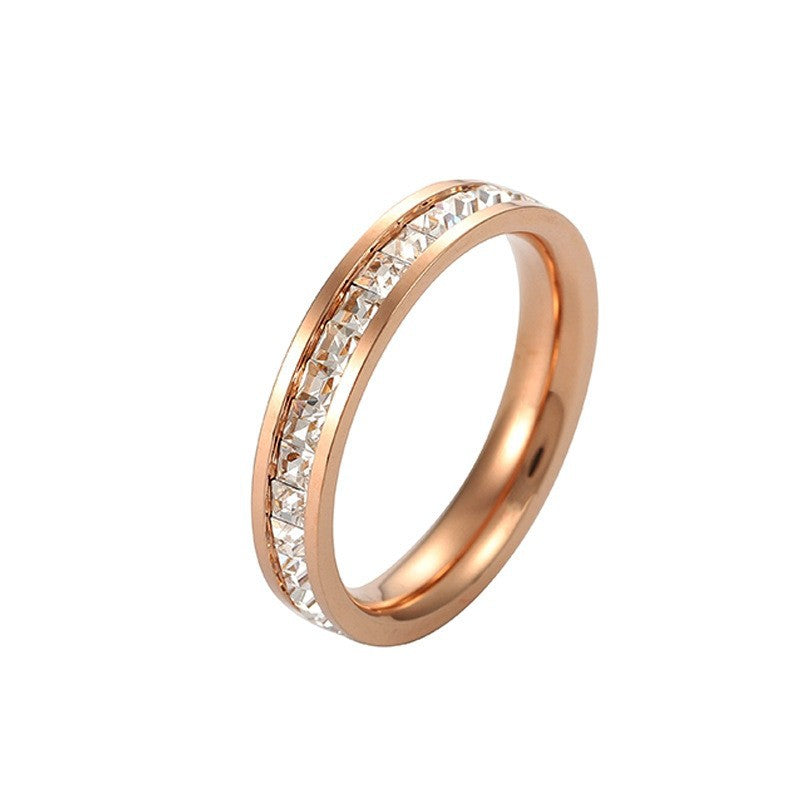 Steel Single Row Starry Couple Female Square Diamond Personality Rings