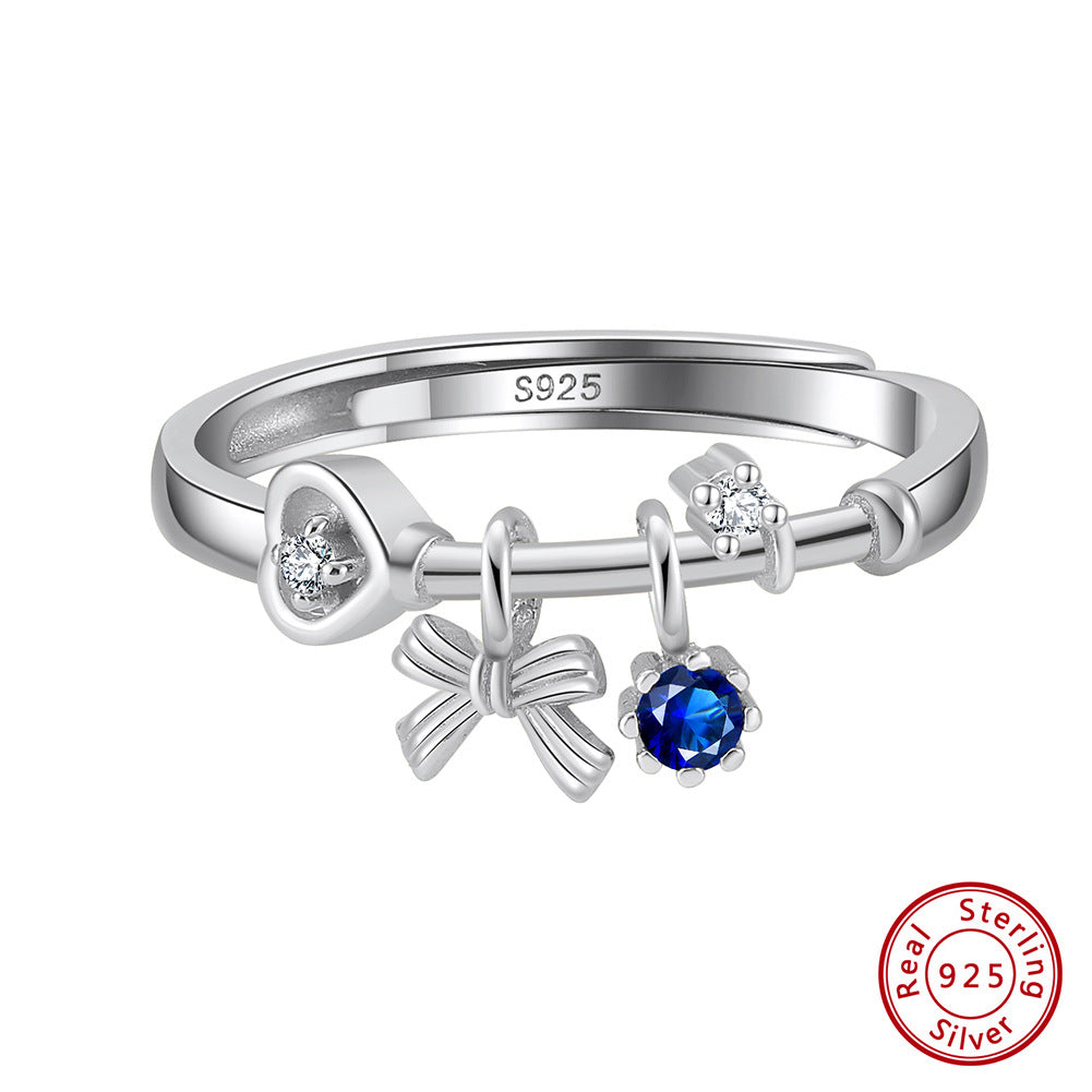 Sterling Sier Bow Cubic Zirconia Sapphire Rings