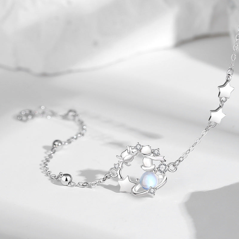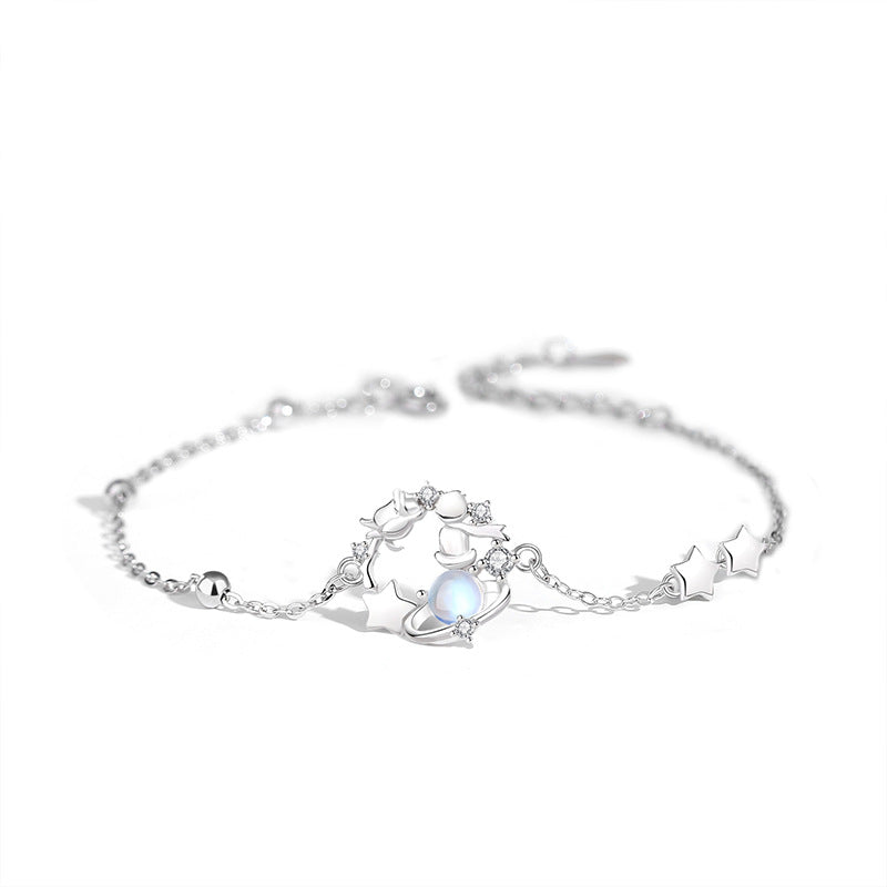 Sterling Sier Rose Planet Moonstone Design Bracelets