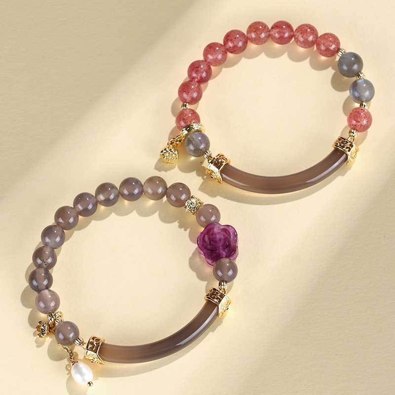 Strawberry Crystal Gray Moonlight Half Beaded Female Niche Bracelets