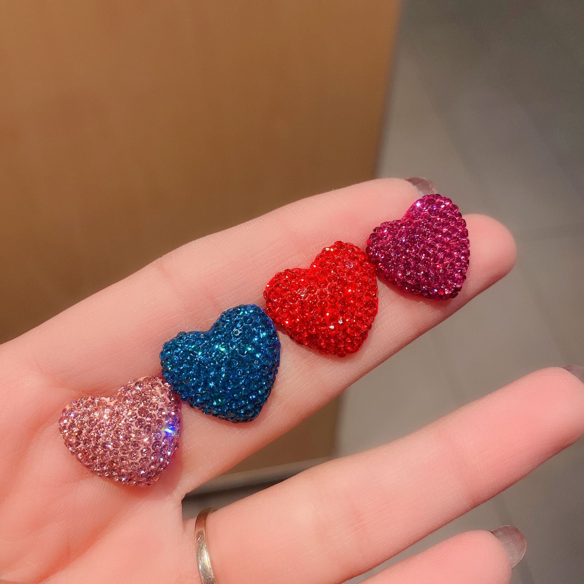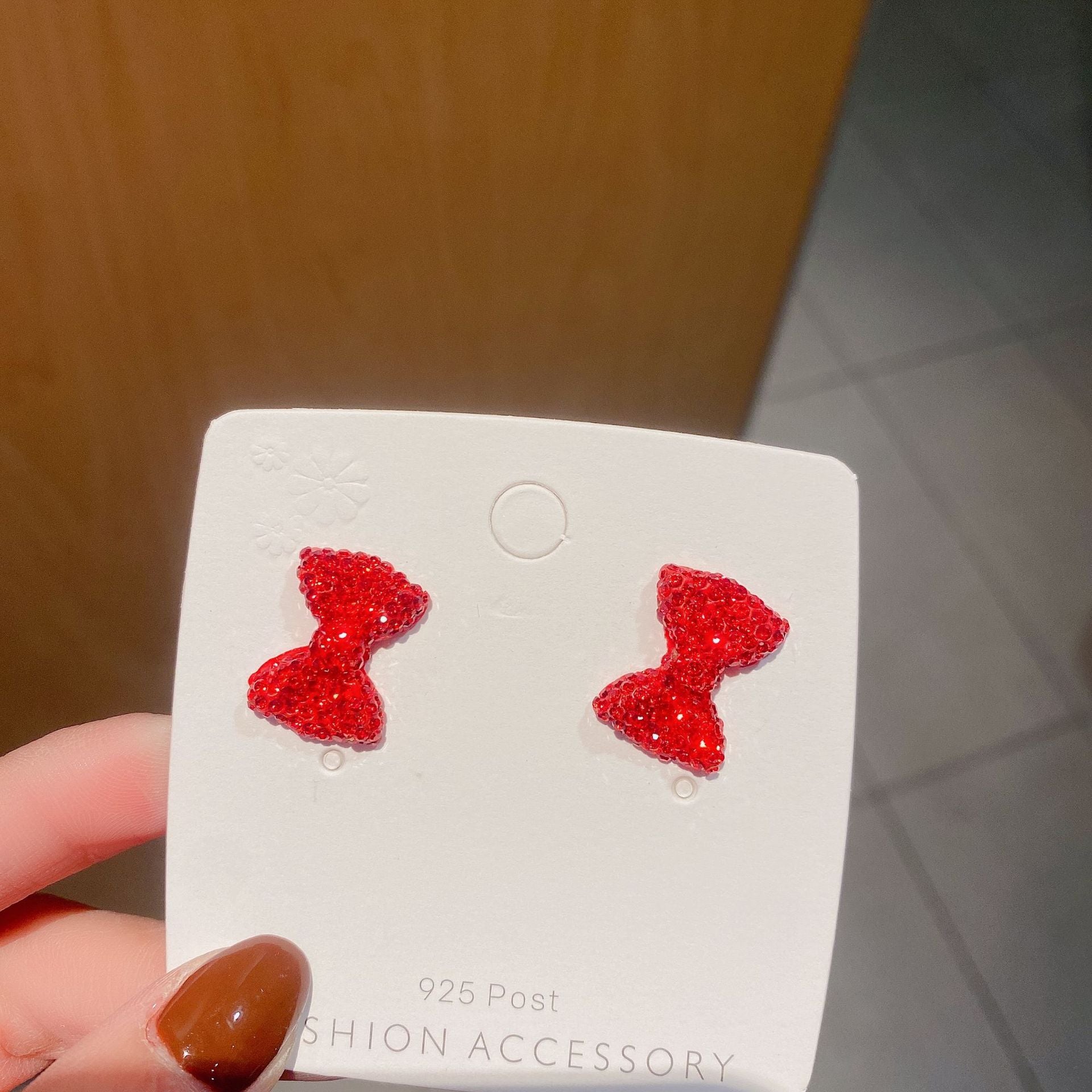 Style Graceful Bow Bear Ear Full Diamond Cute Heart Earrings
