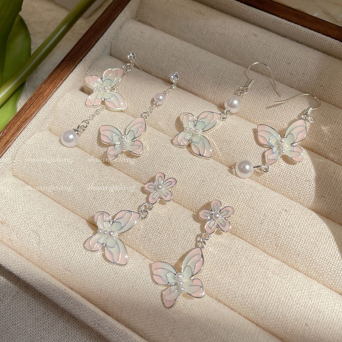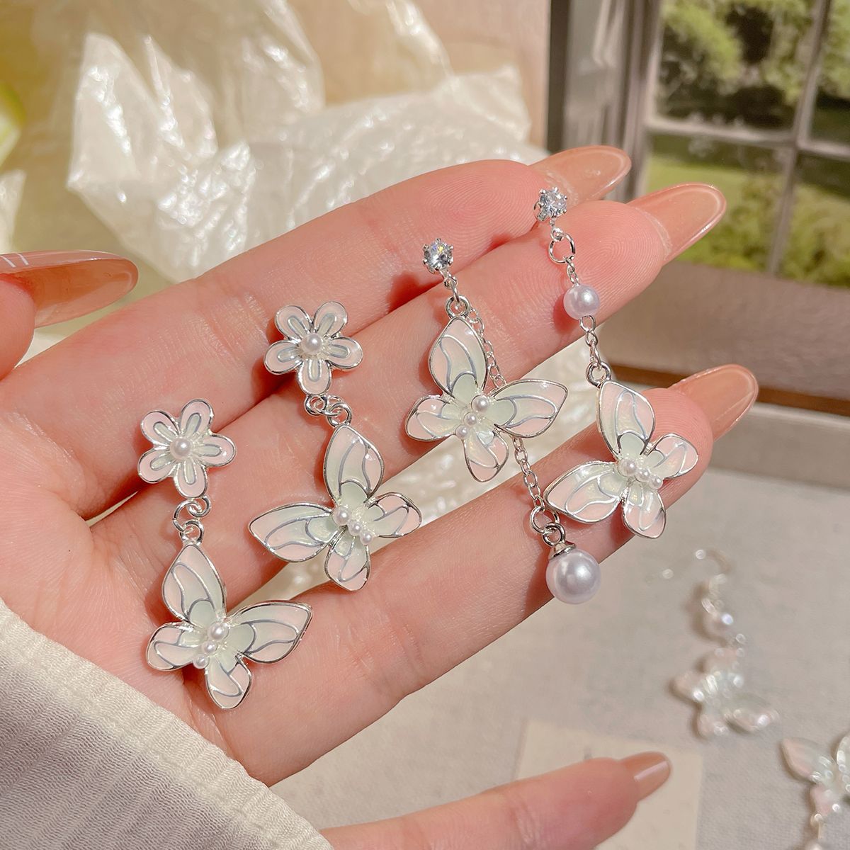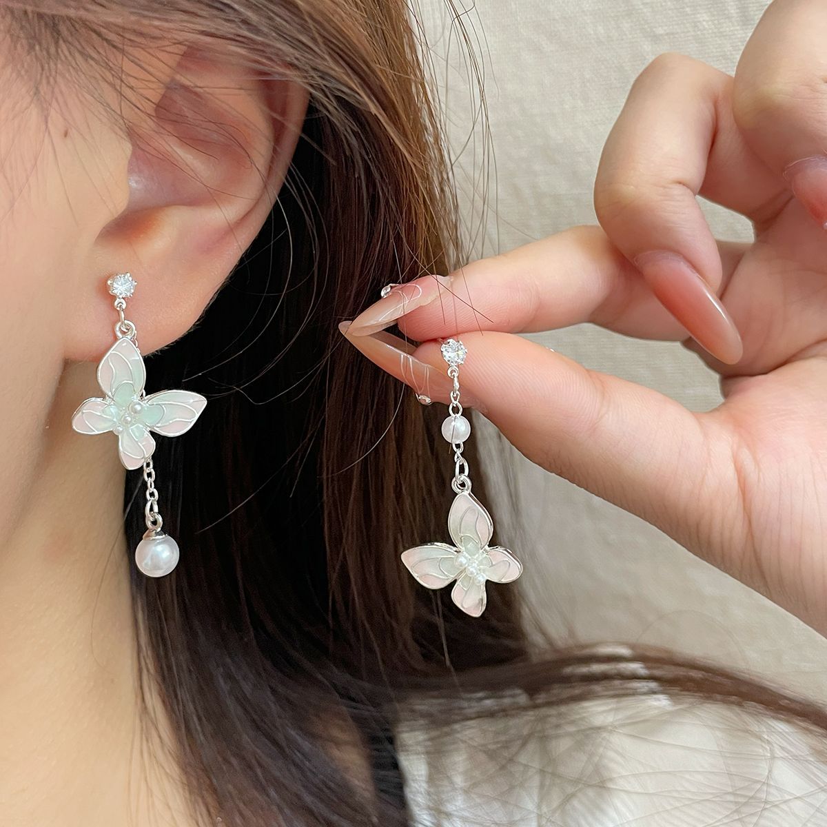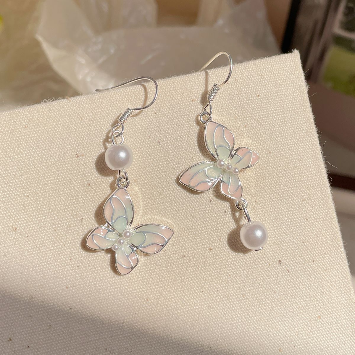 Sweet Butterfly Female Sier Needle Design Gradient Earrings