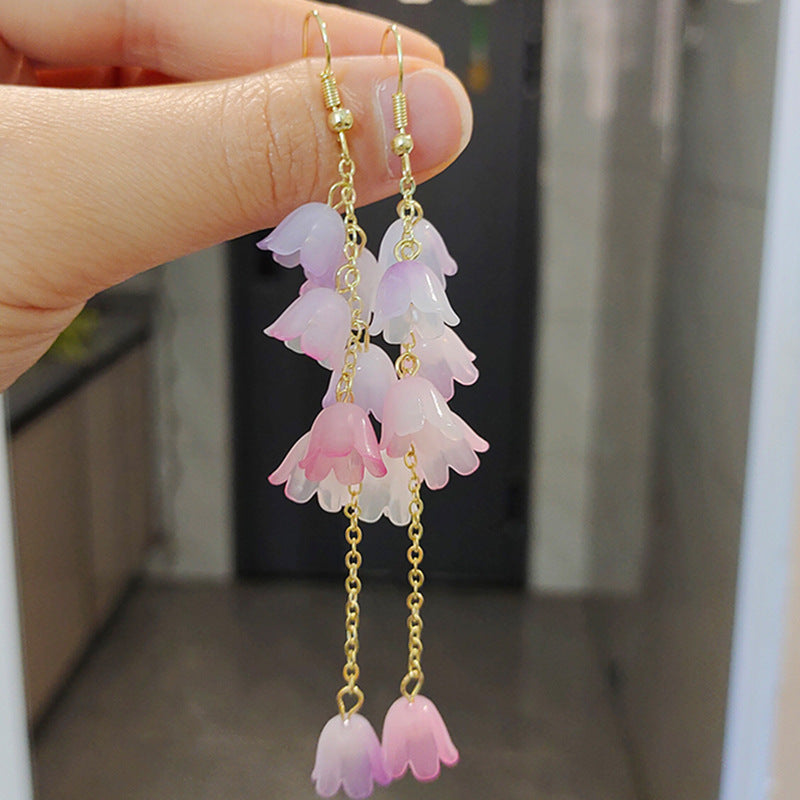 Sweet Pink Lily Ear Hook Elegant Earrings