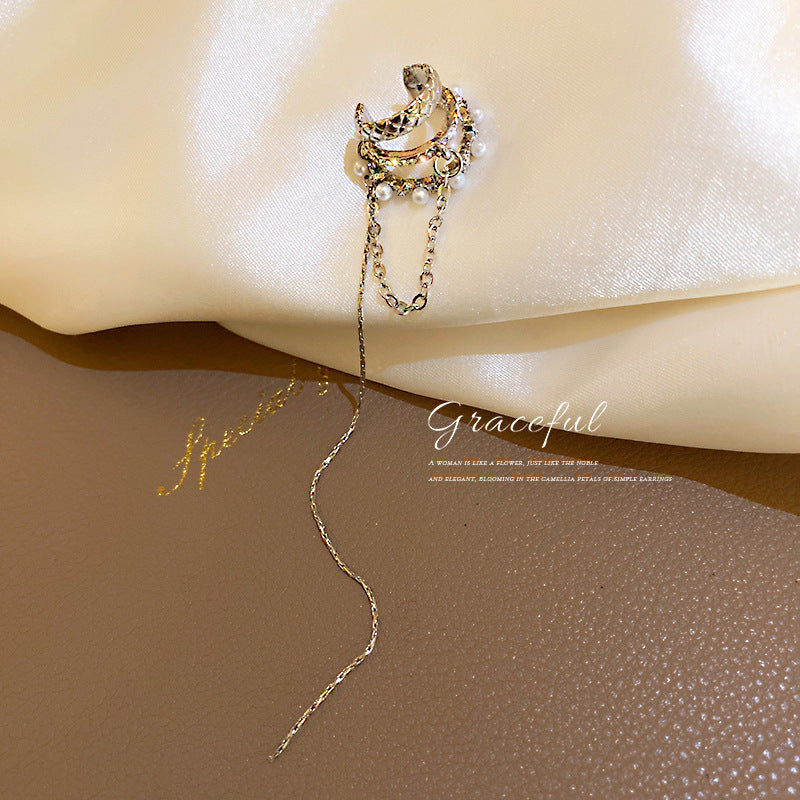 Tassel Rhinestone Pearl Ear Clip No Pierced Female Earrings