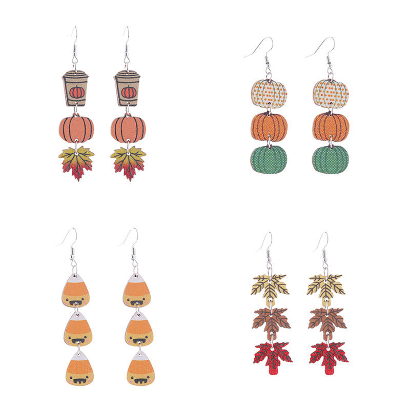 Thanksgiving Wooden Colorful Maple Leaf Three-color Earrings