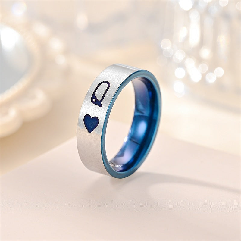 Titanium Steel Couple Playing Cards Valentine's Day Rings