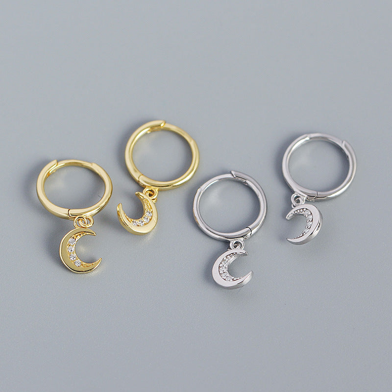 Twin Sier Moon Diamond Metallic Ear Earrings