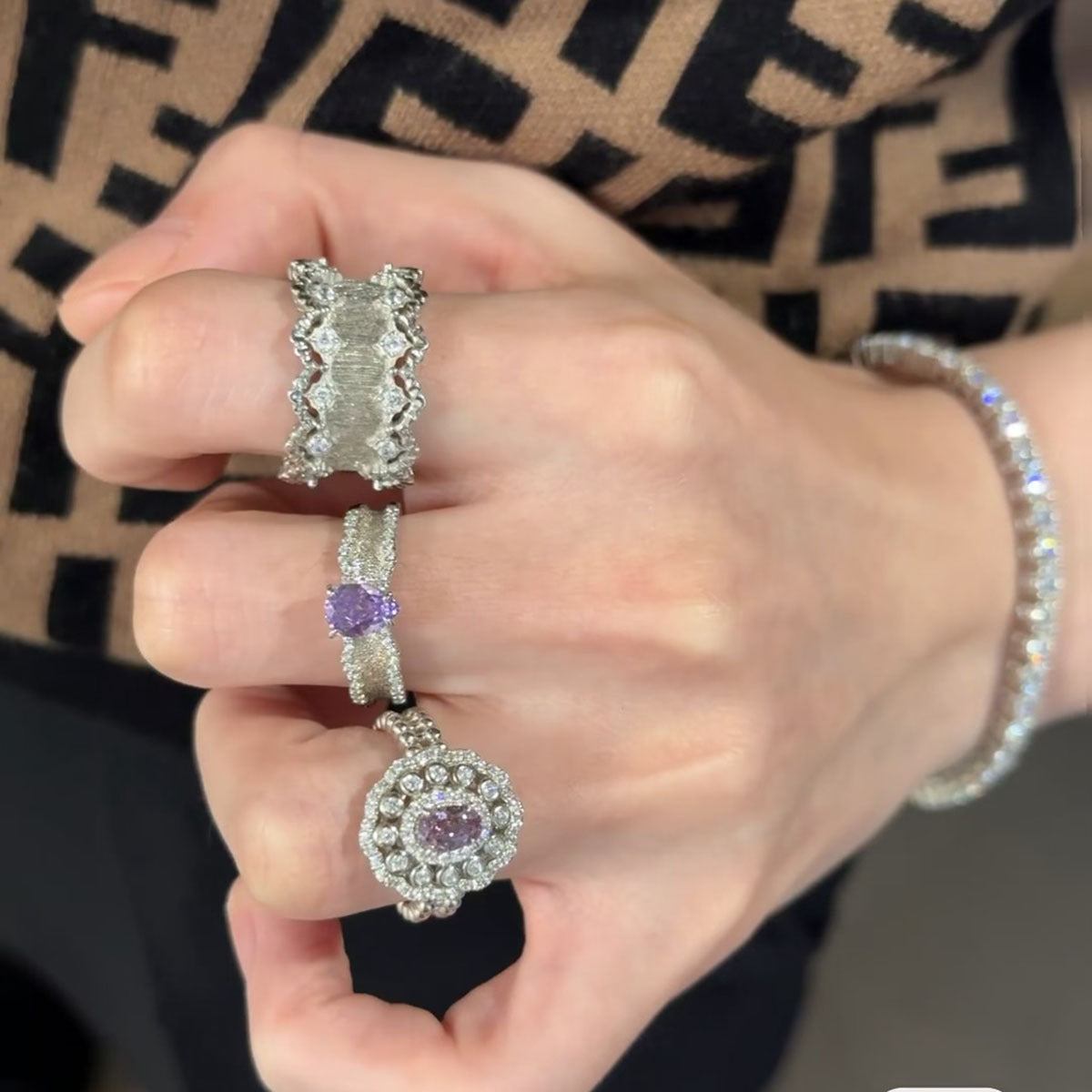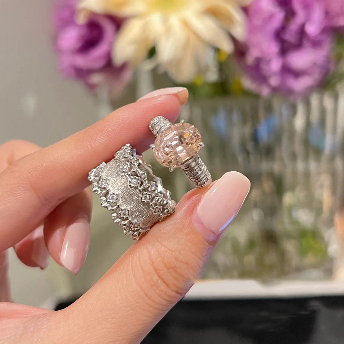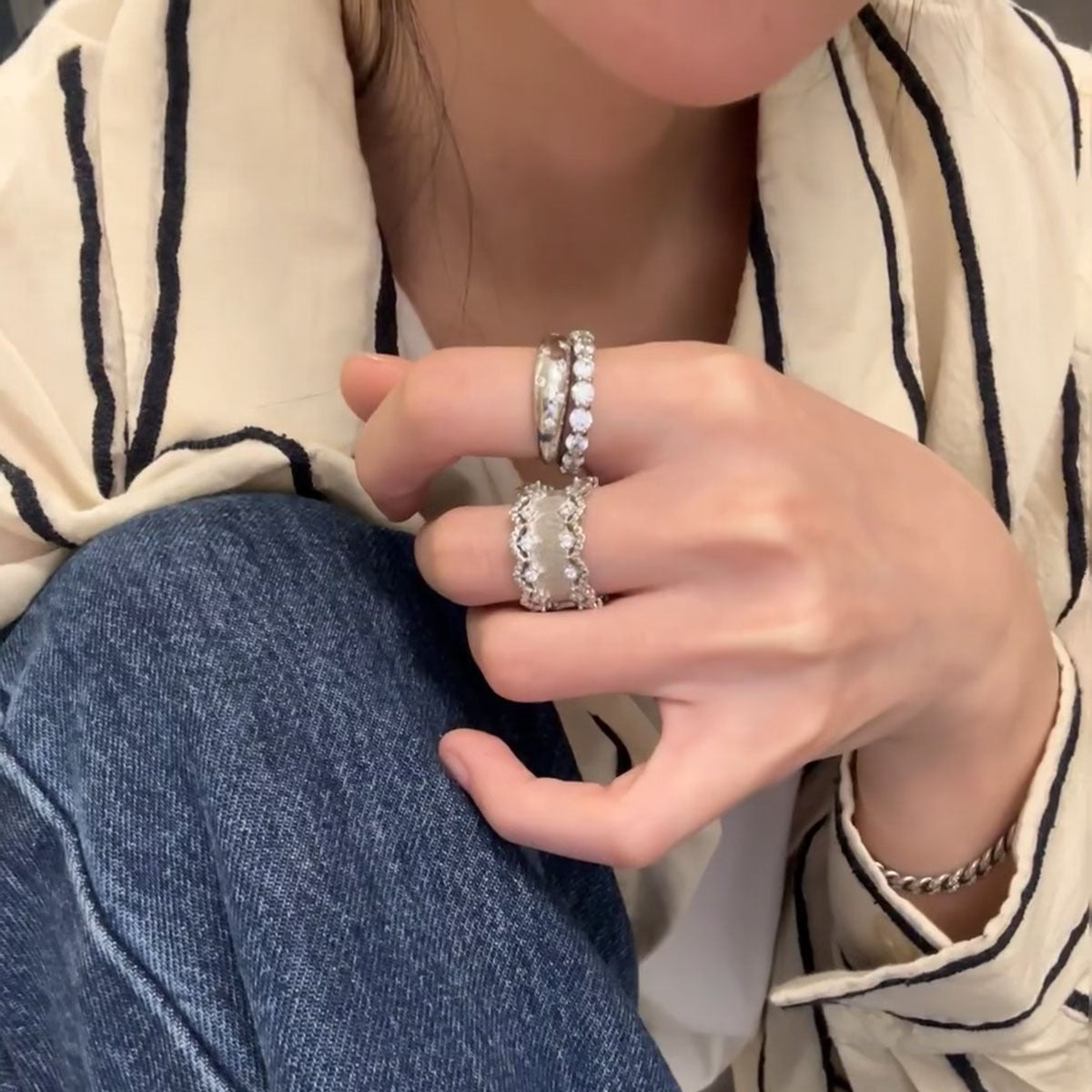 Vintage Court Style Hollow Lace Chic Brushed Rings